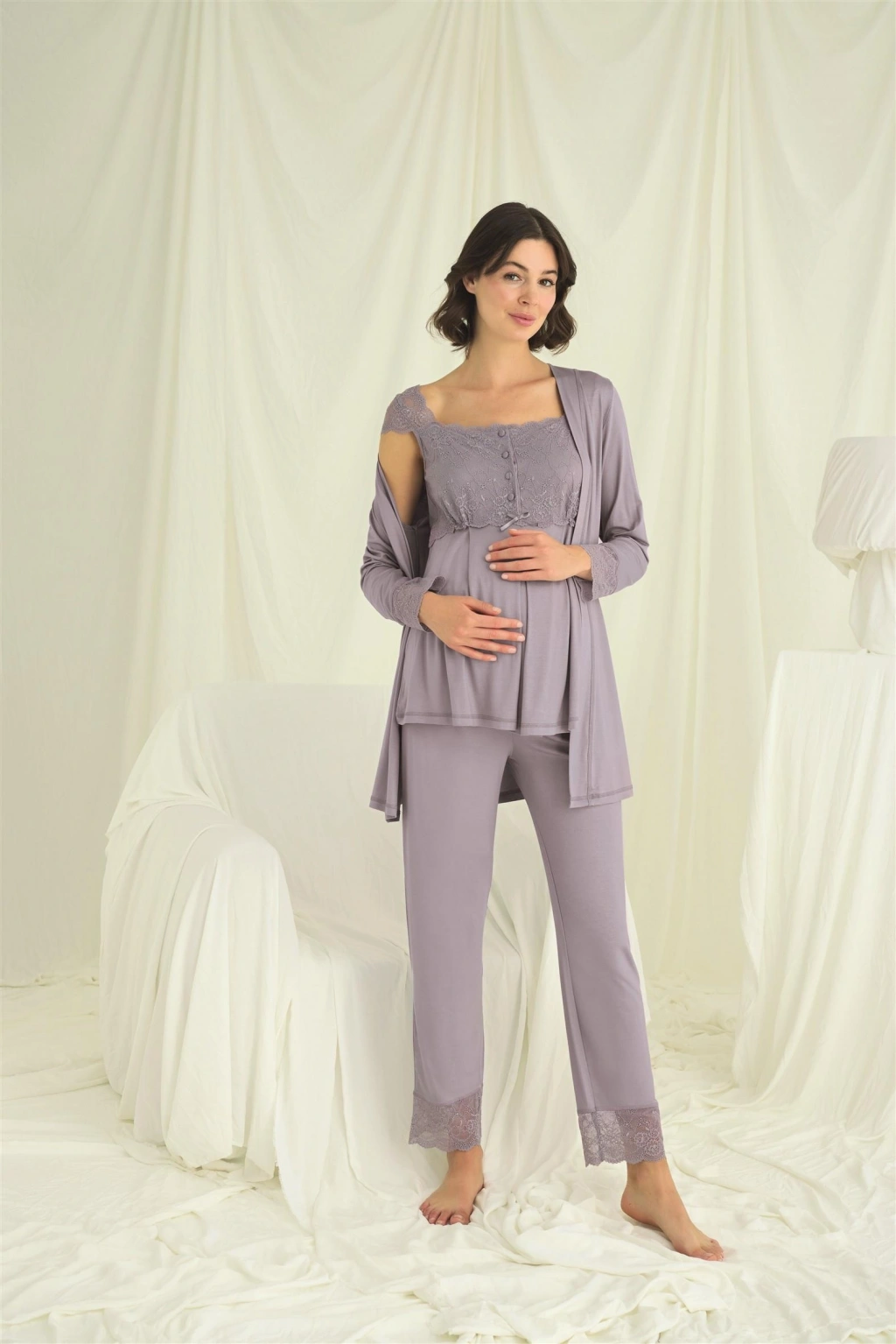 Dantelli Hamile Lohusa Sabahlık Takımı