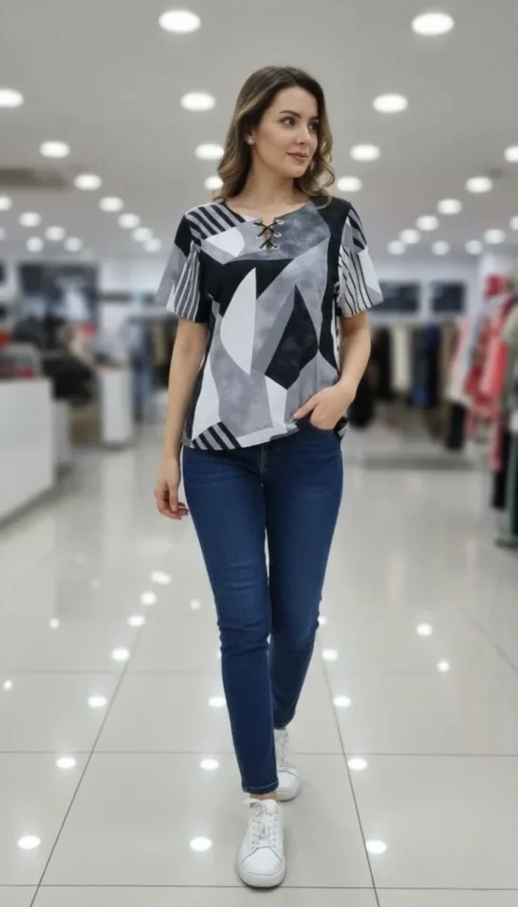 Modelin Ölçüleri: Boy:165, Kg:55, Göğüs:90, Bel:72, Kalça: 100