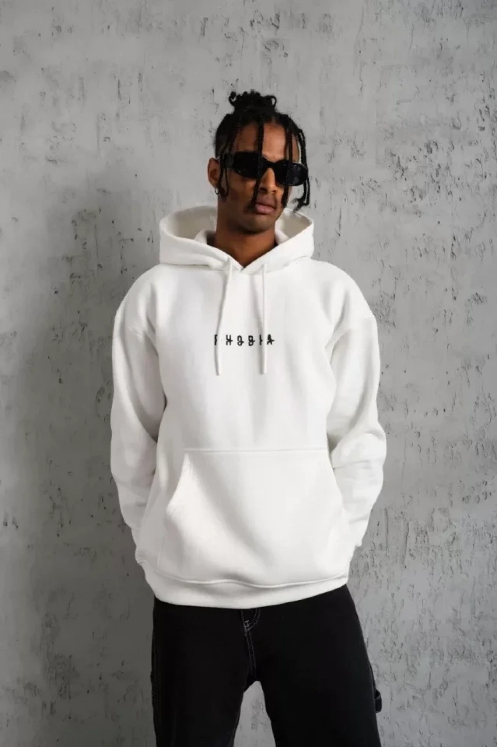 MARSiLYAN- Erkek Düz Kapüşonlu Sweat - Beyaz