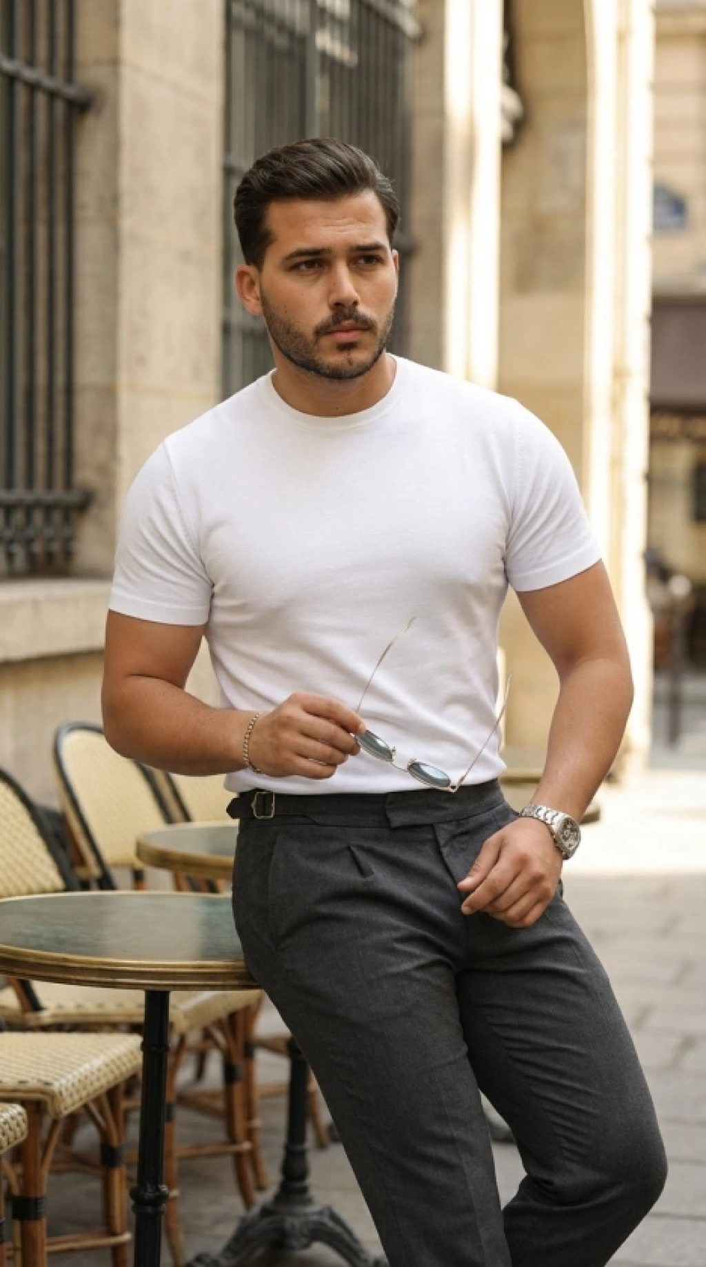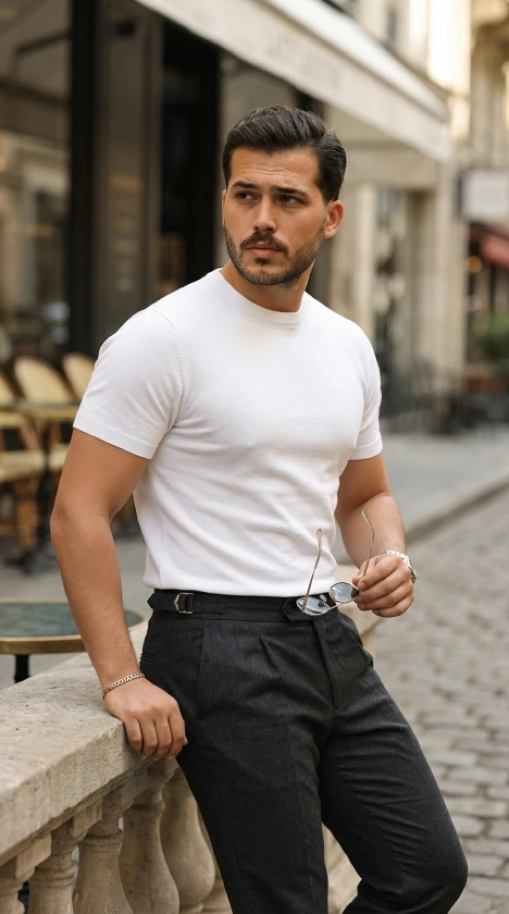 MARSiLYAN- Erkek Basic Bisiklet Yaka Kısa Kollu Triko Tişört - %100 Pamuk Akrilik