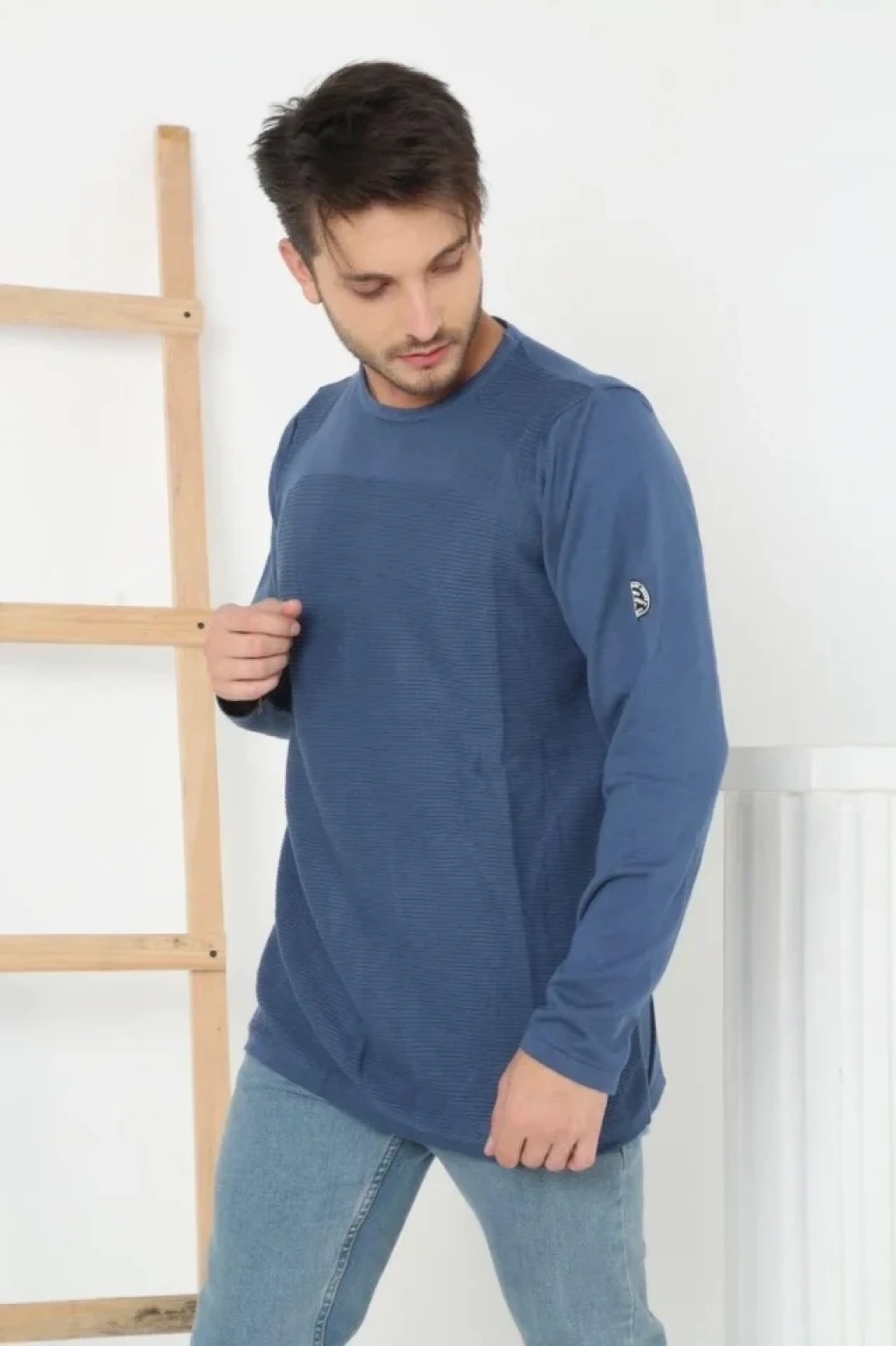 Erkek Biskilet Yaka Kolu Armalı - Koyu Mavi