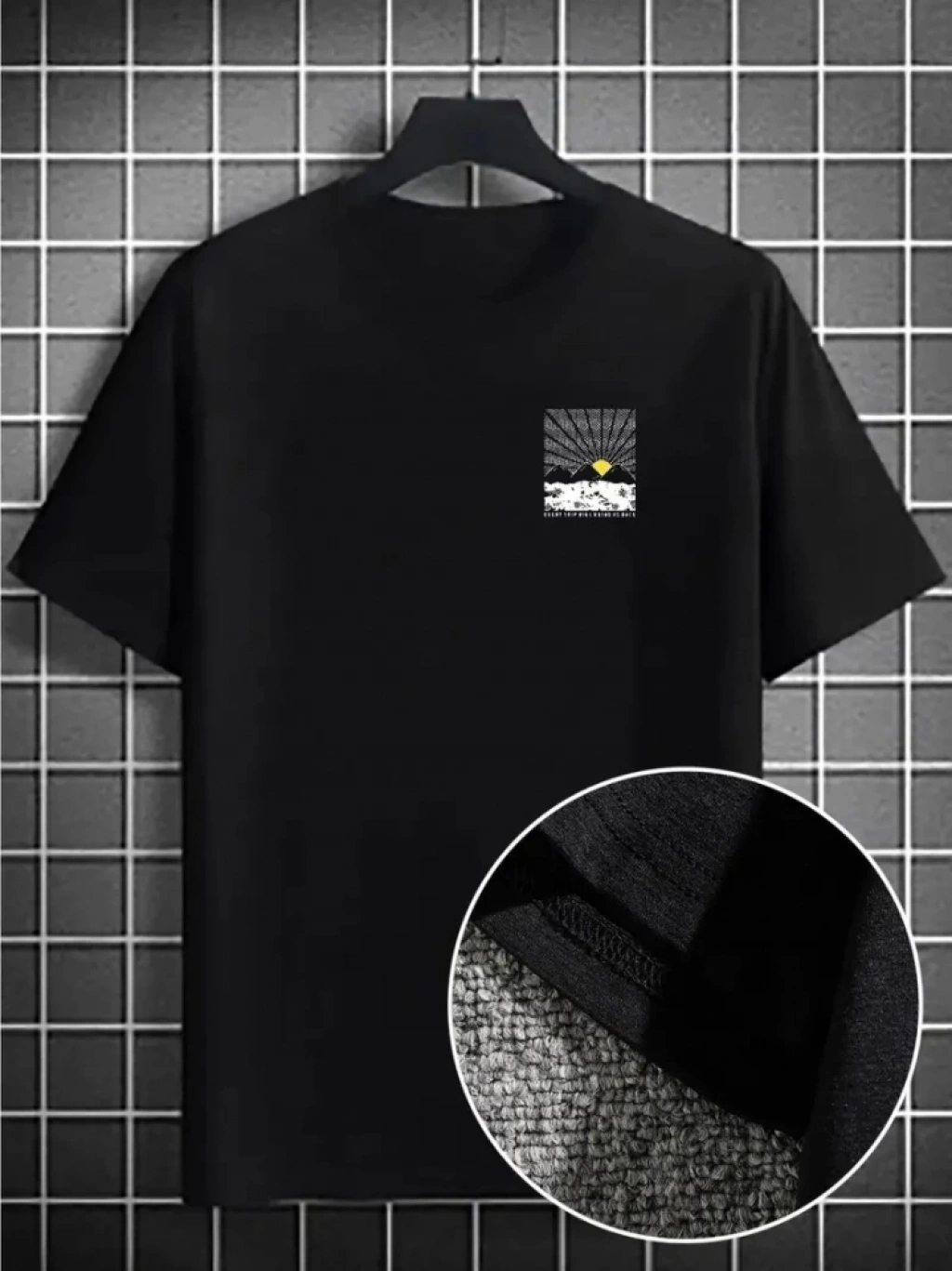 MARSiLYAN- Erkek Bisiklet Yaka Ön Baskılı Kısa Kollu Tişört Streetwear Günlük Basic Pamuklu T-shirt - Siyah