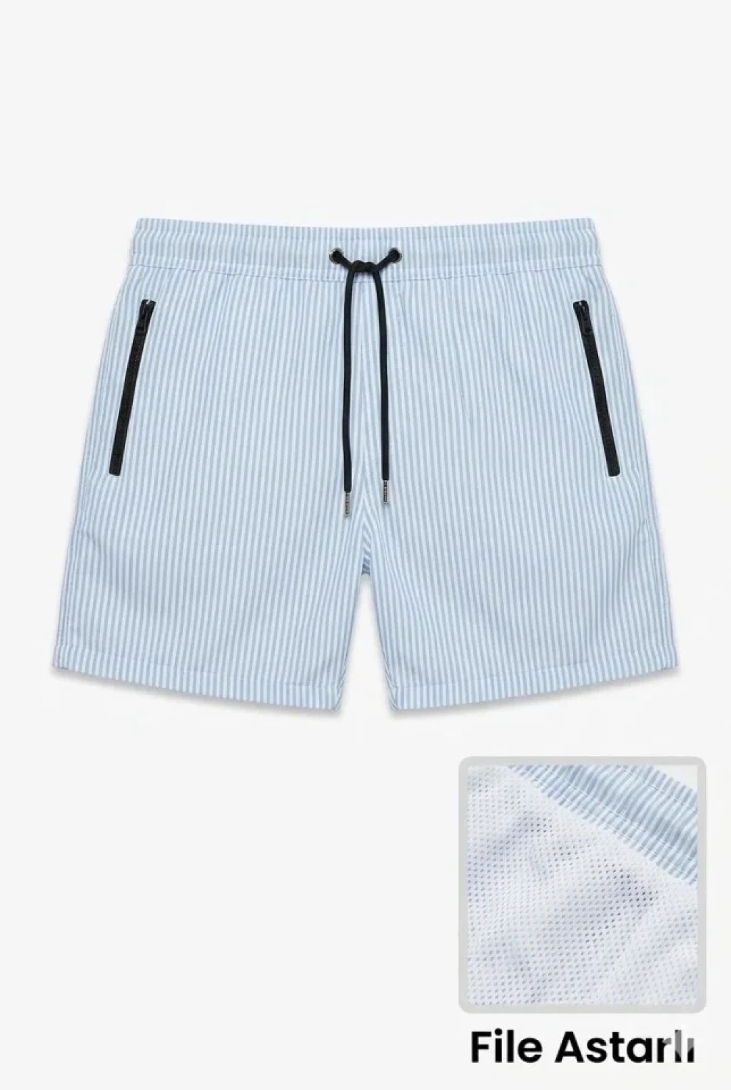 Erkek Deniz Şortu Fermuarlı Cepli File Astarlı Hızlı Kuruyan Premium - Bebek Mavisi