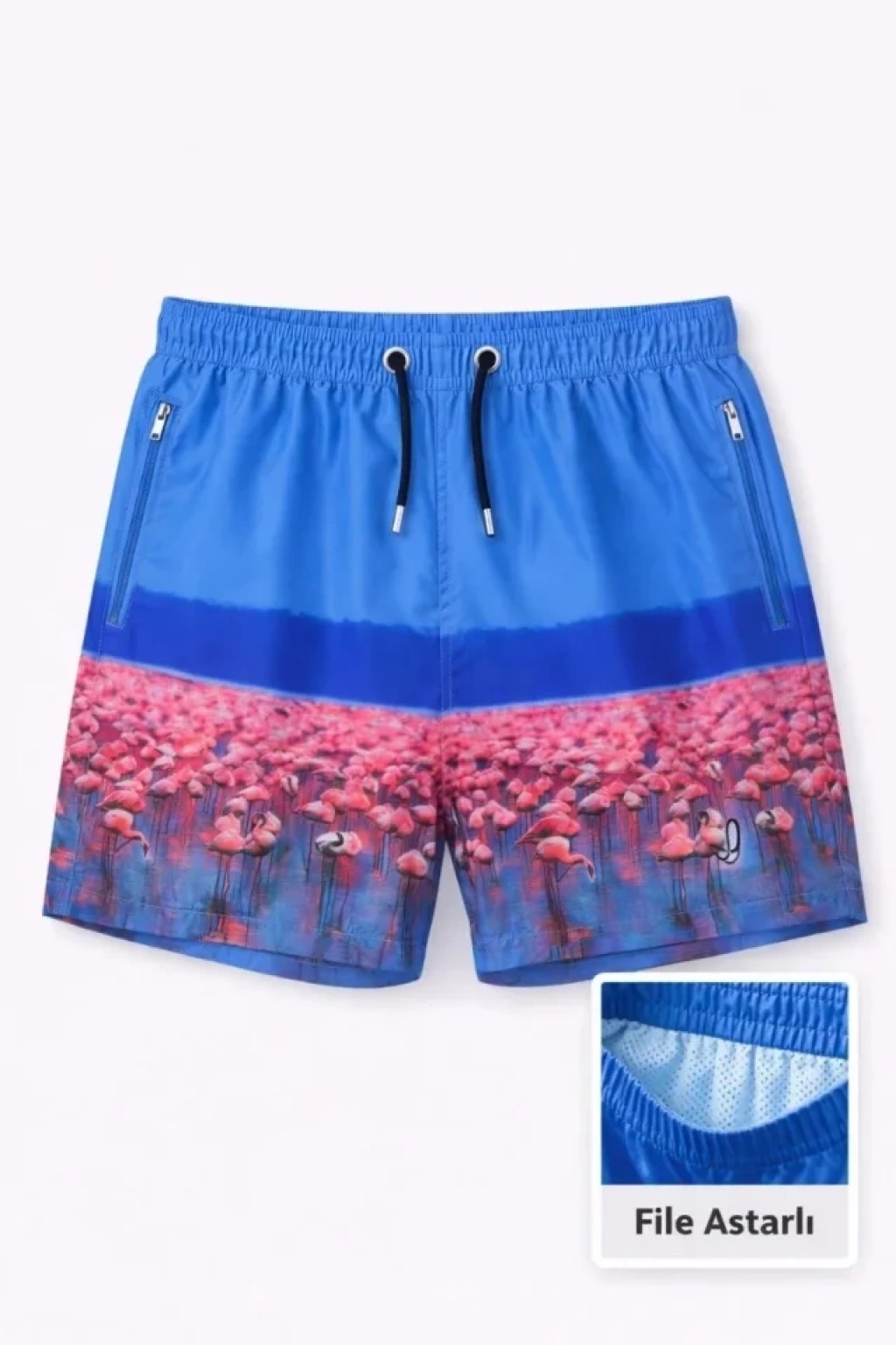 MARSiLYAN- Erkek Deniz Şortu Fermuarlı Cepli File Astarlı Hızlı Kuruyan Premium - Çok Renkli
