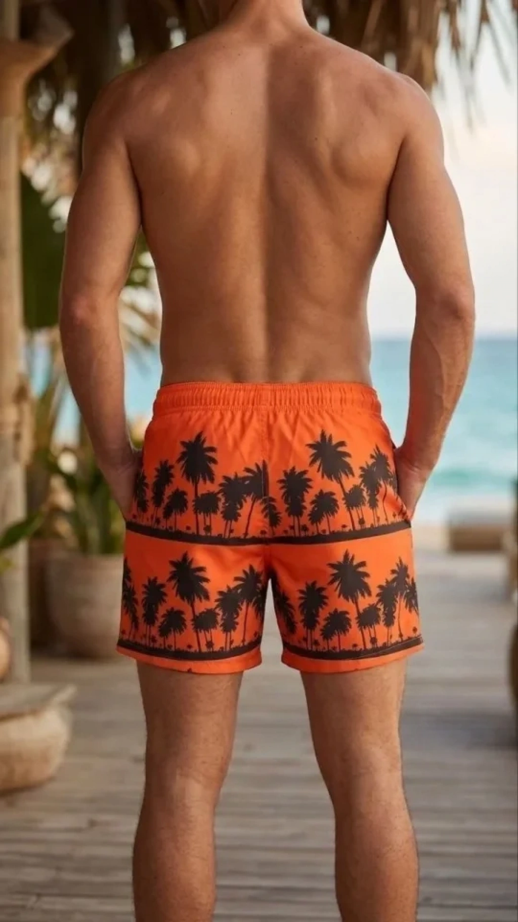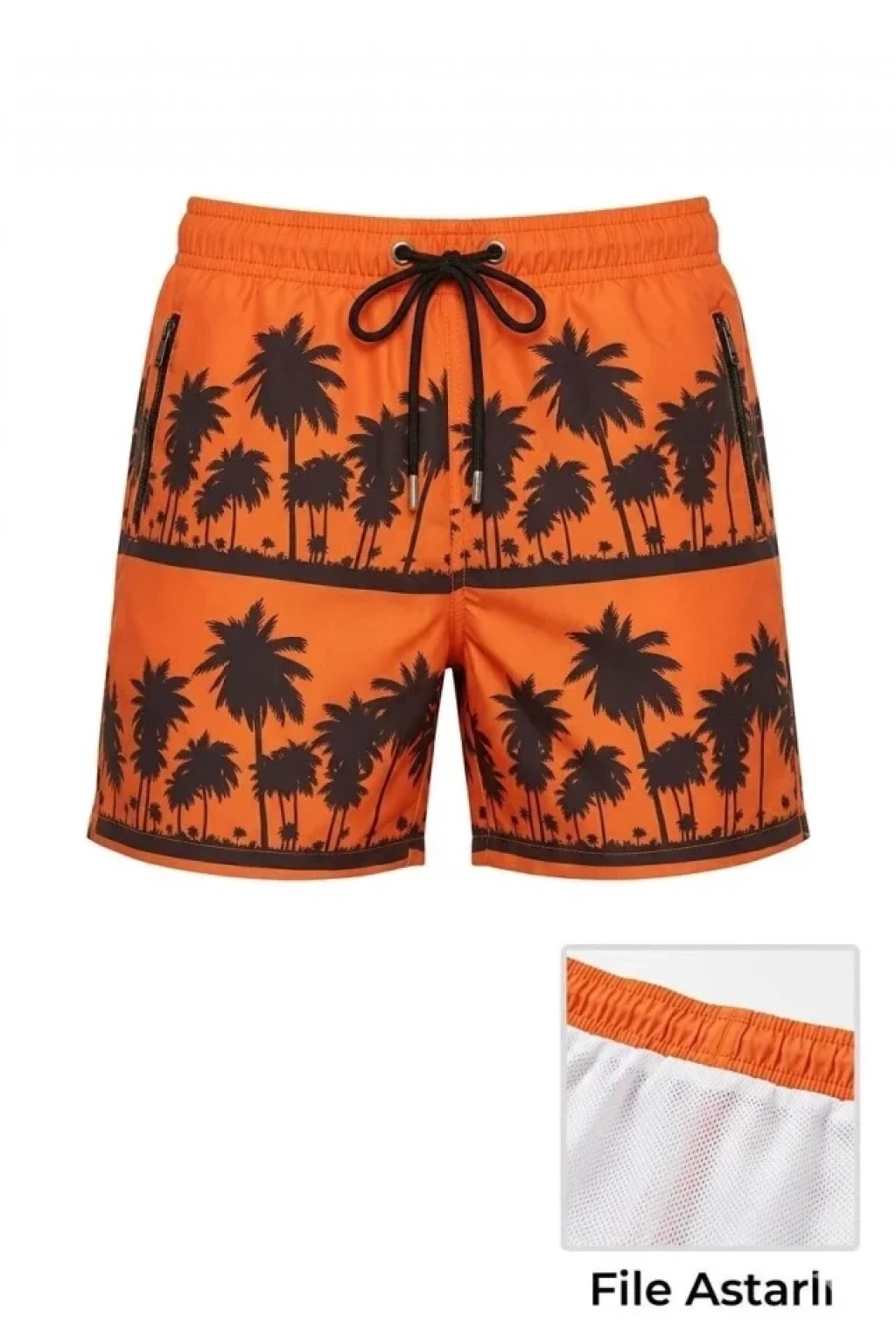 MARSiLYAN- Erkek Deniz Şortu Fermuarlı Cepli File Astarlı Hızlı Kuruyan Premium - Turuncu