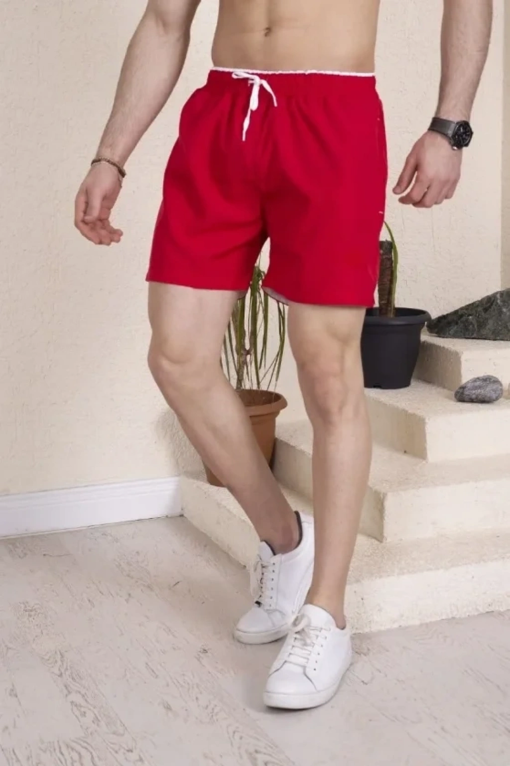 MARSiLYAN- Erkek Deniz Şortu Fermuarlı Cepli File Astarlı Hızlı Kuruyan Premium - Kırmızı