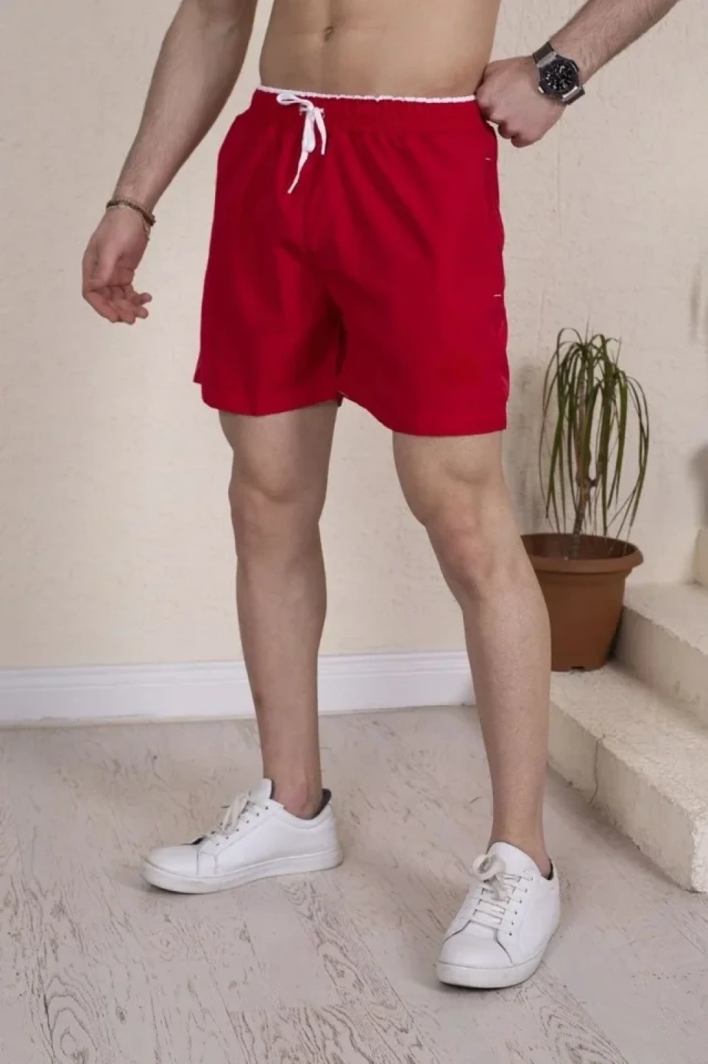 MARSiLYAN- Erkek Deniz Şortu Fermuarlı Cepli File Astarlı - Kırmızı