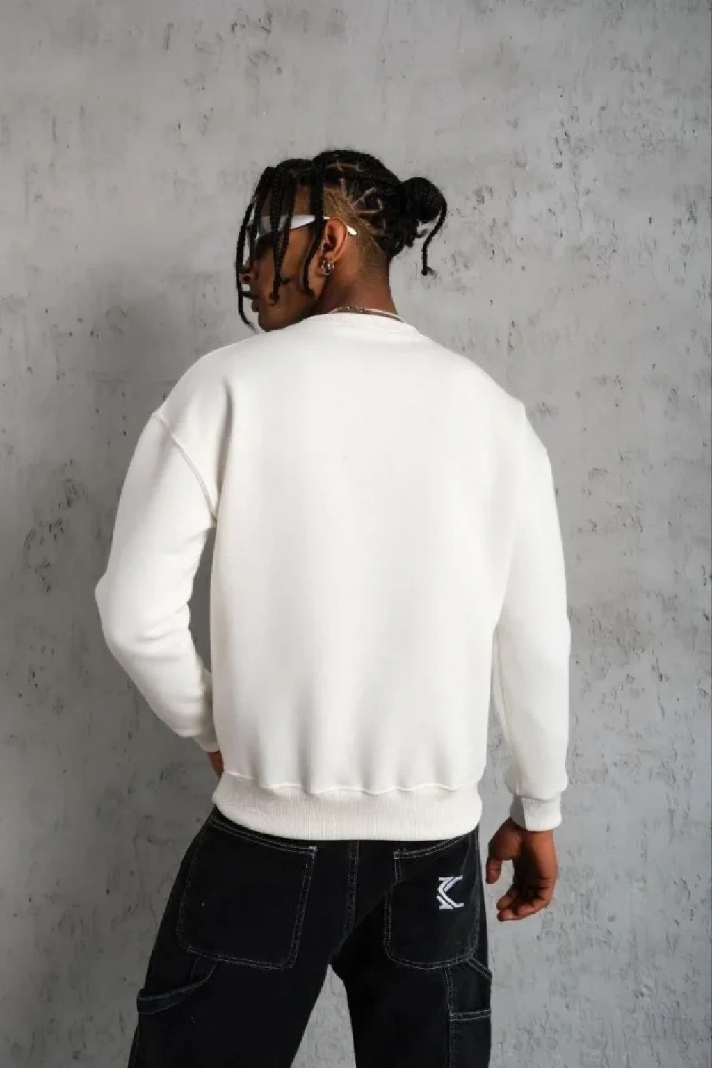 Erkek Düz Bisiklet Yaka Sweat - Beyaz