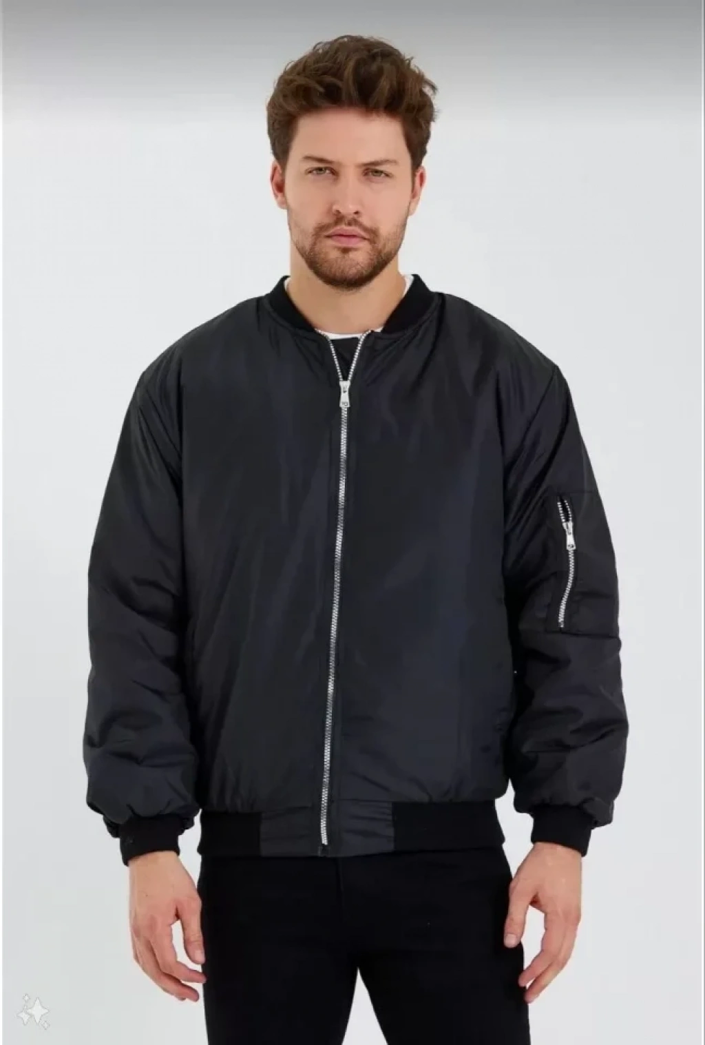 MARSiLYAN- Erkek Düz Bomber Ceket - Siyah