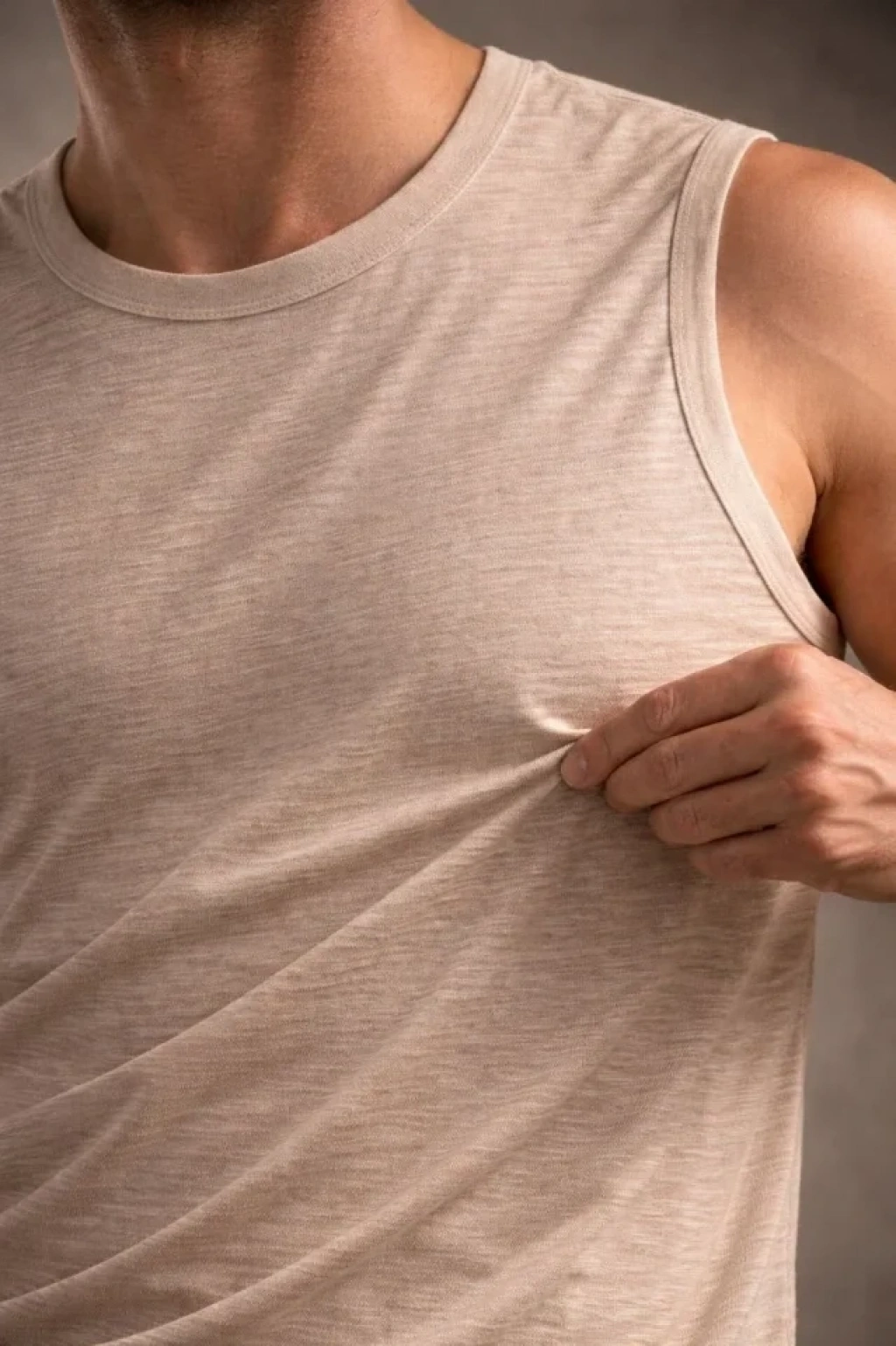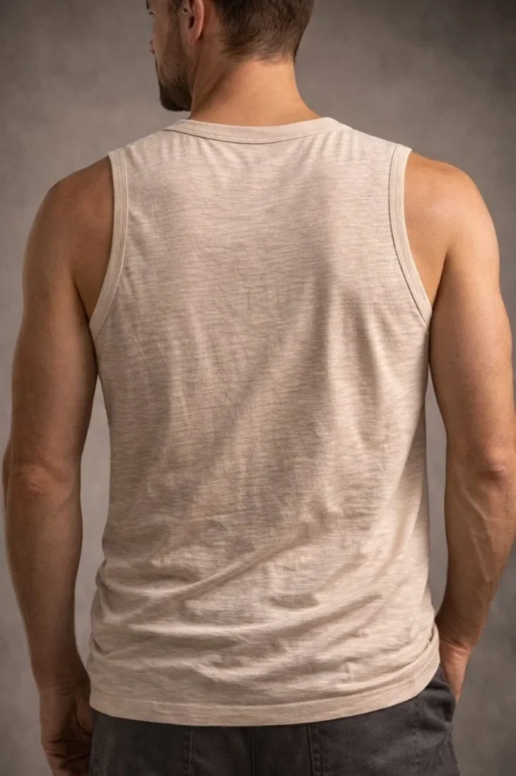 Erkek Flamlı Kumaş Sıfır Kolsuz Atlet Basic Spor Üst, Günlük Ve Fitness Kullanımına Uygun - Taş