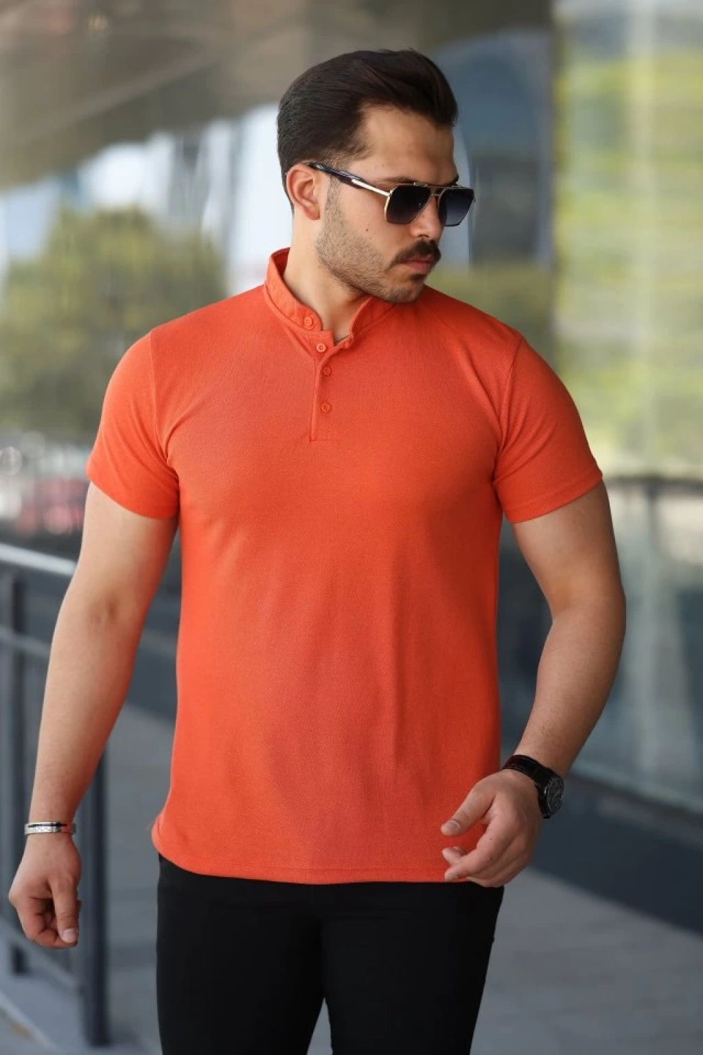 Erkek Hakim Yaka Dokuma Pamuklu Kumaş Kısa Kollu Tişört