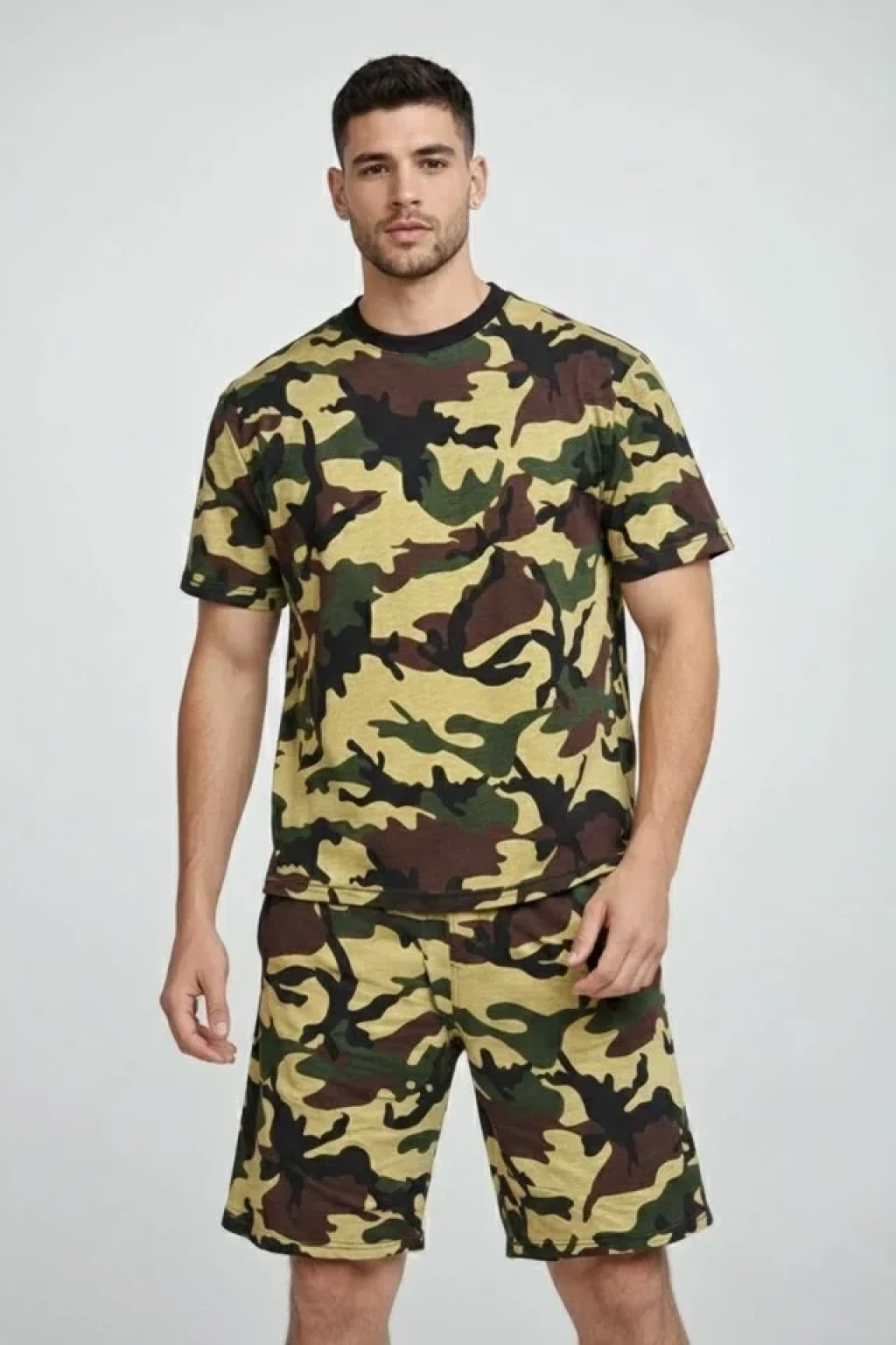 Erkek Kamuflaj Desenli Tişört Şort Takım – Regular Fit Günlük Spor 2’li Yazlık Kombin - Kamuflaj