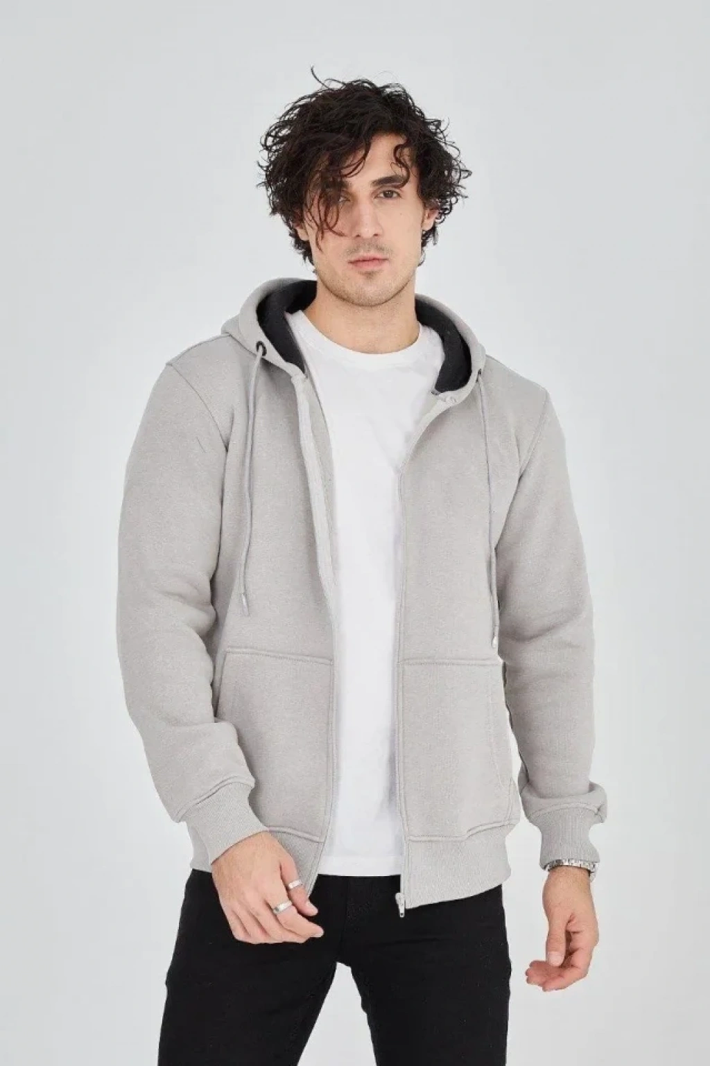 MARSiLYAN- Erkek Kapüşonlu Düz Fermuarlı Hırka - Boyalı Gri