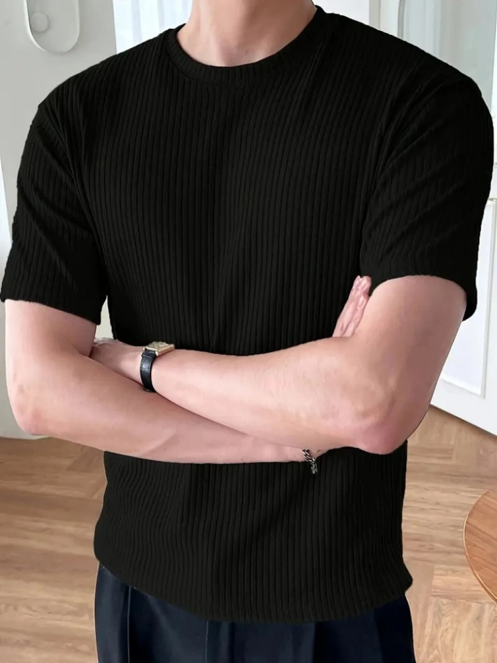 Erkek Kısa Kollu Bisiklet Yaka Triko Tişört