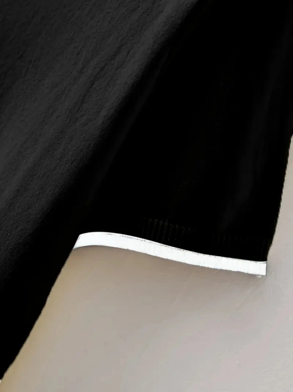MARSiLYAN- Yakası Düğmeli Yakalı Pike Düz T-Shirt - Siyah