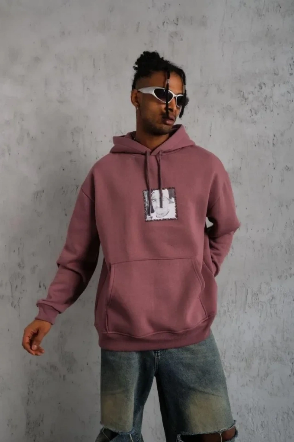 MARSiLYAN- Erkek Eldiven Baskılı Kapüşonlu Sweat - Gül Kurusu
