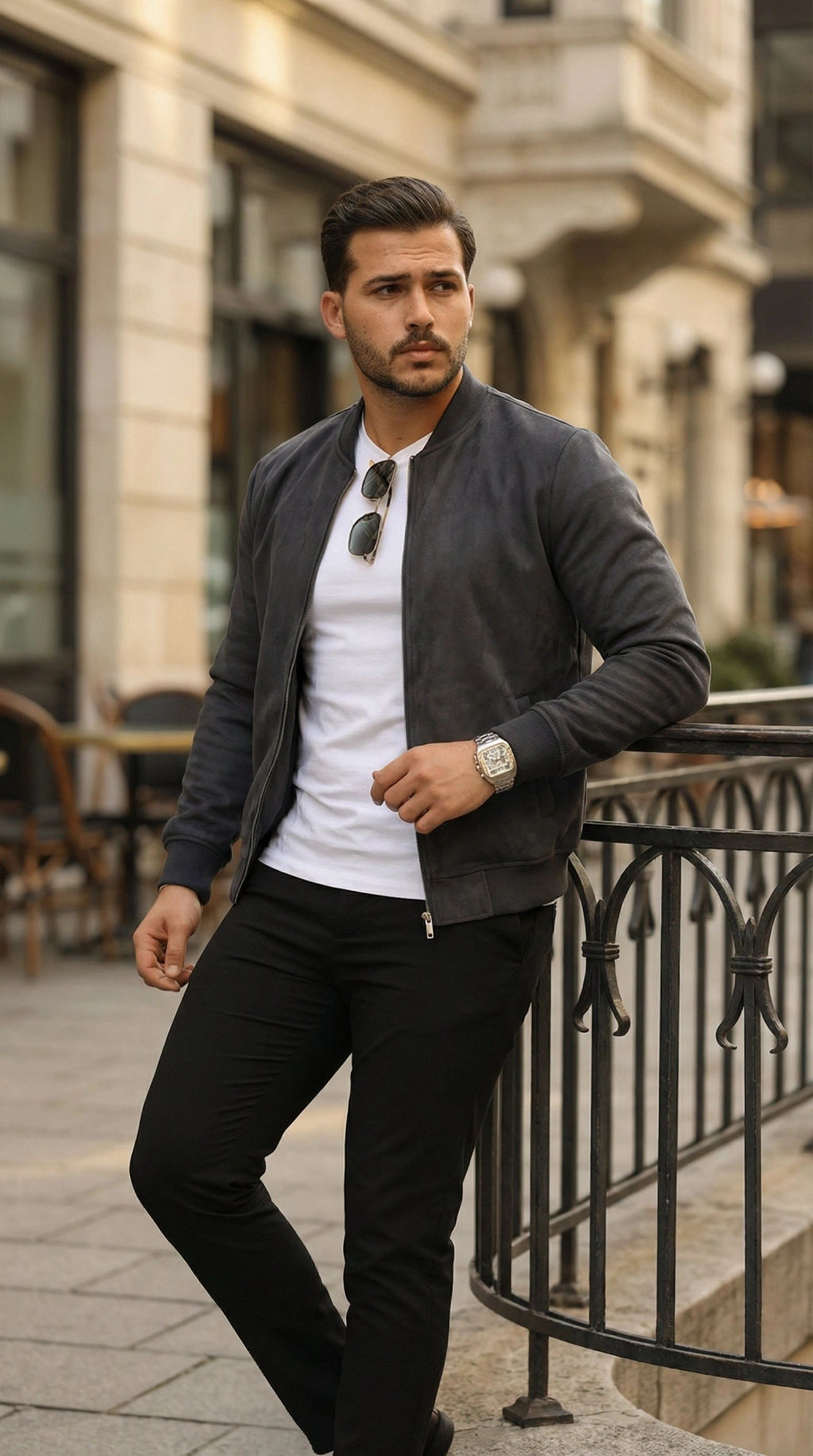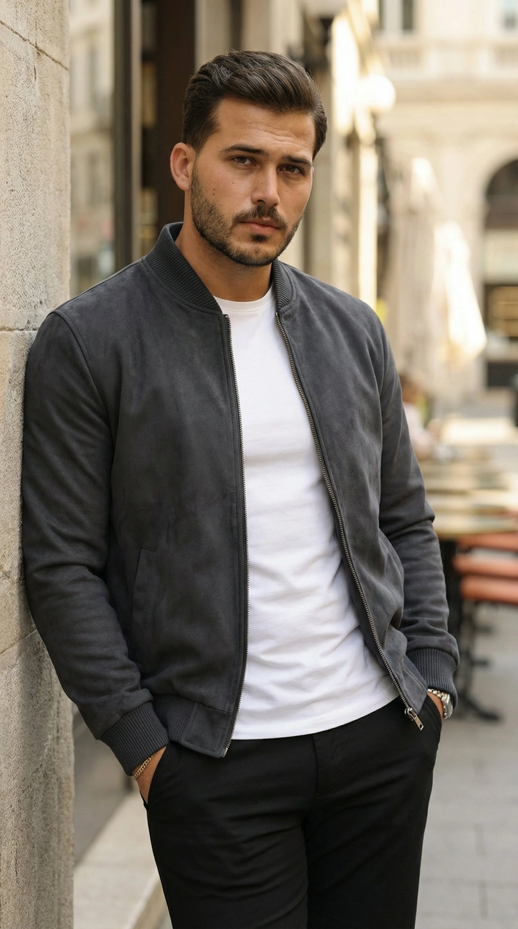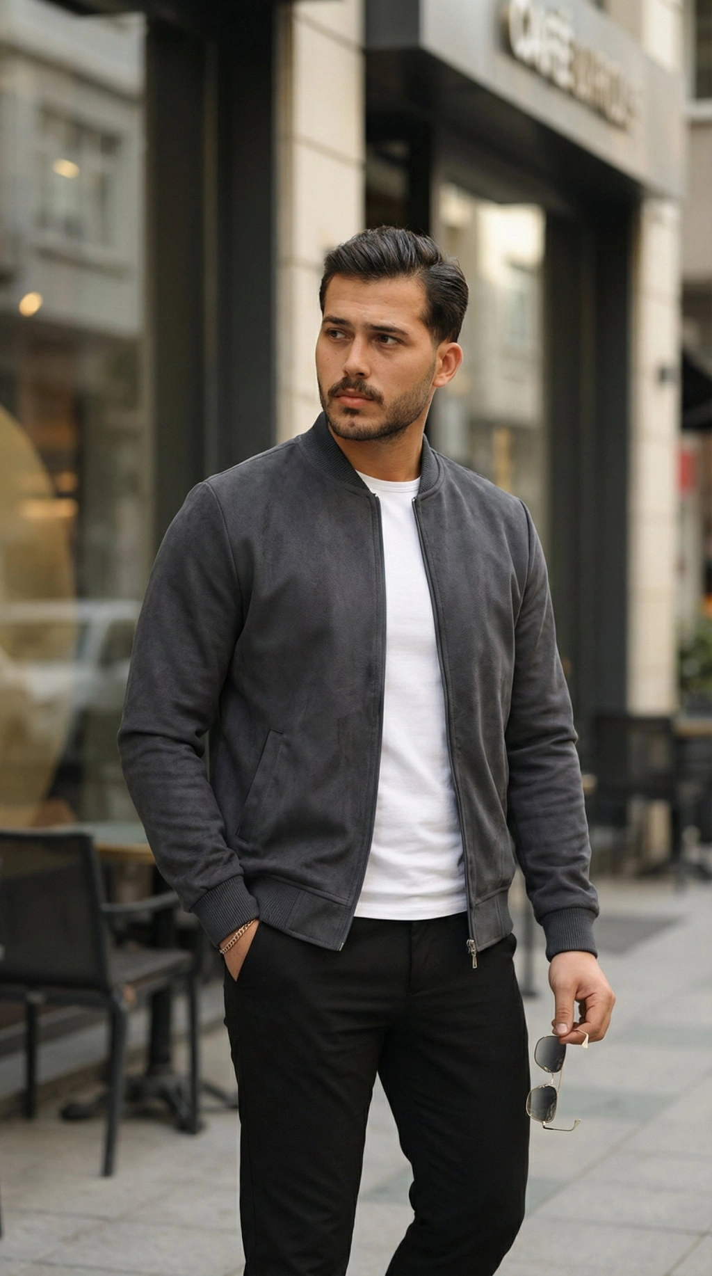 Erkek önden Fermuarlı Içi Astarlı Süet Ceket