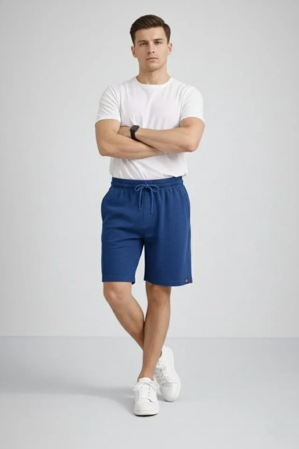 Erkek Otoban Dokuma Şort Beli Lastikli Bağcıklı, Cepli, Rahat Kesim Günlük Yazlık Şort - İndigo