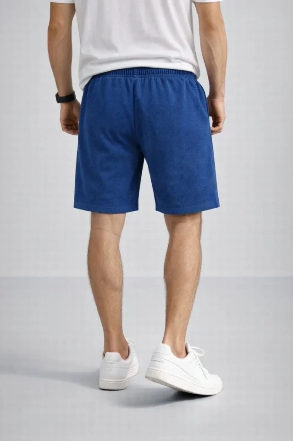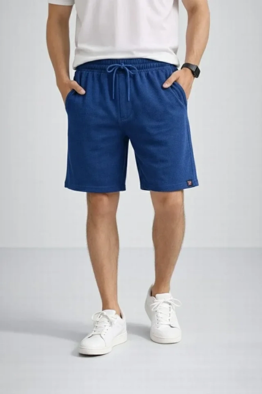 MARSiLYAN- Erkek Otoban Dokuma Şort Beli Lastikli Bağcıklı, Cepli, Rahat Kesim Günlük Yazlık Şort - İndigo