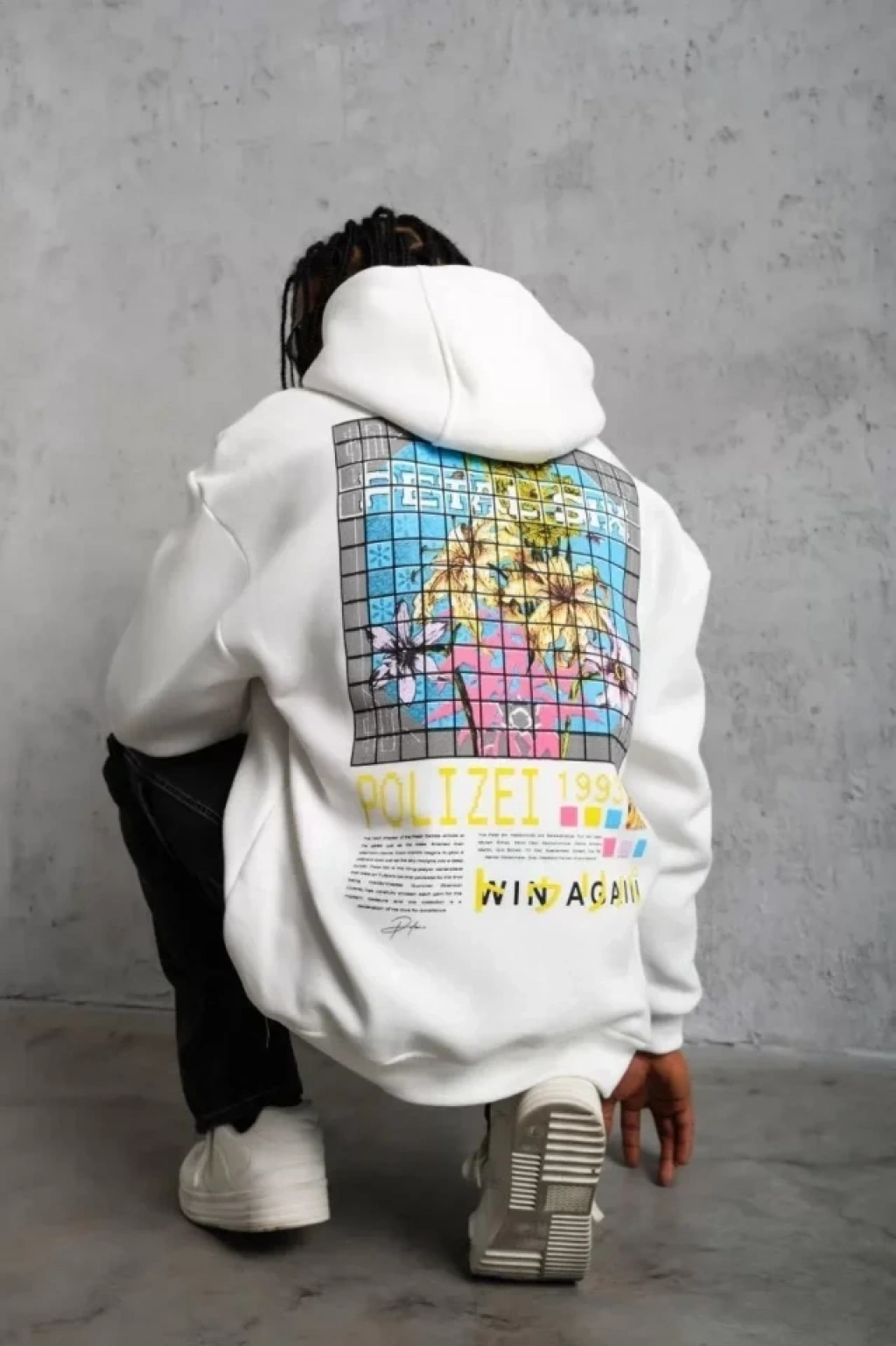 MARSiLYAN- Erkek 98 Baskılı Kapşonlu Sweat - Beyaz