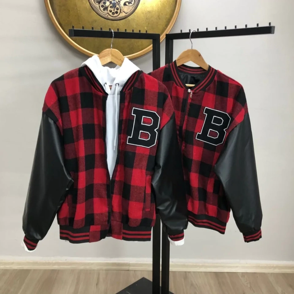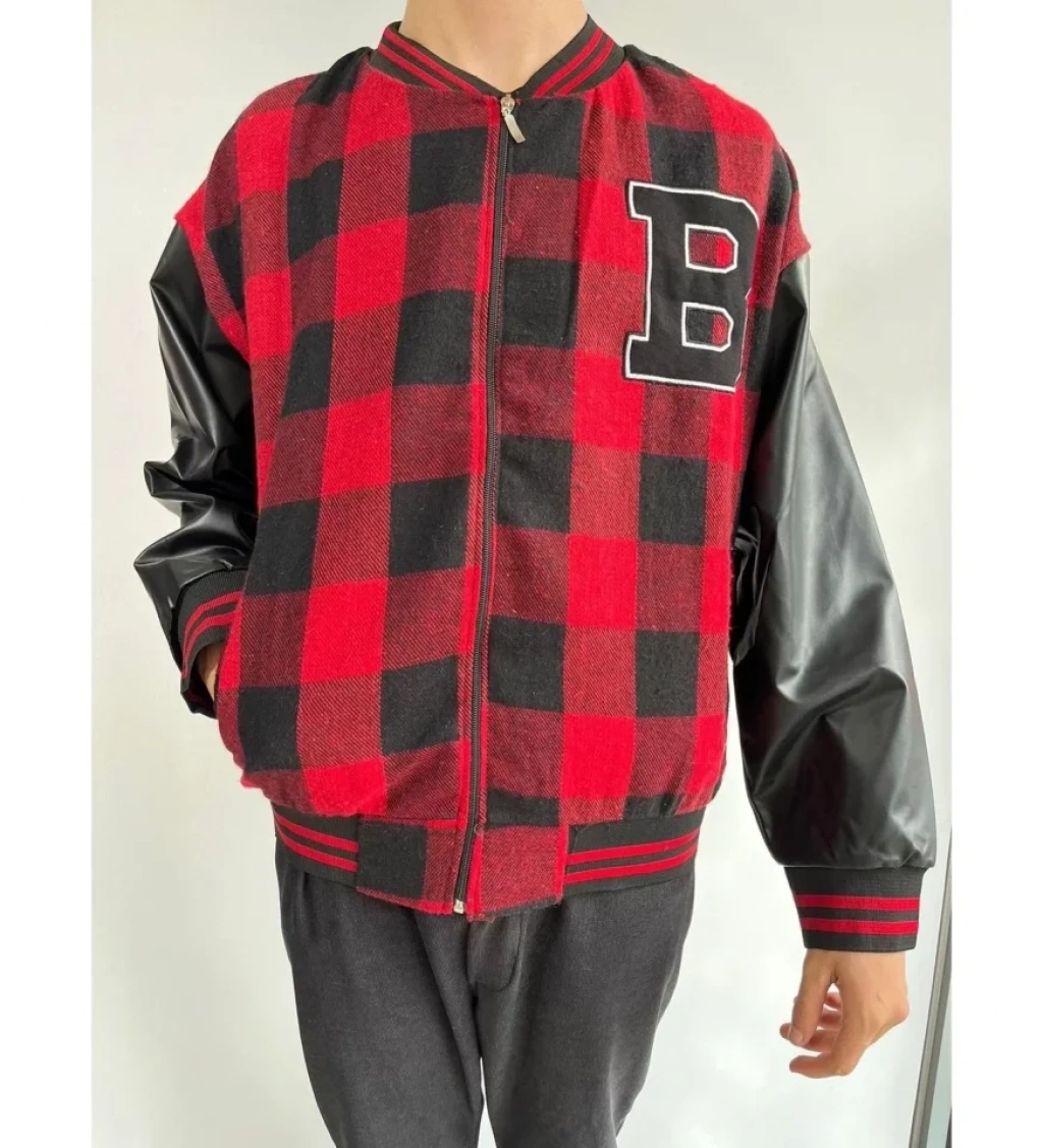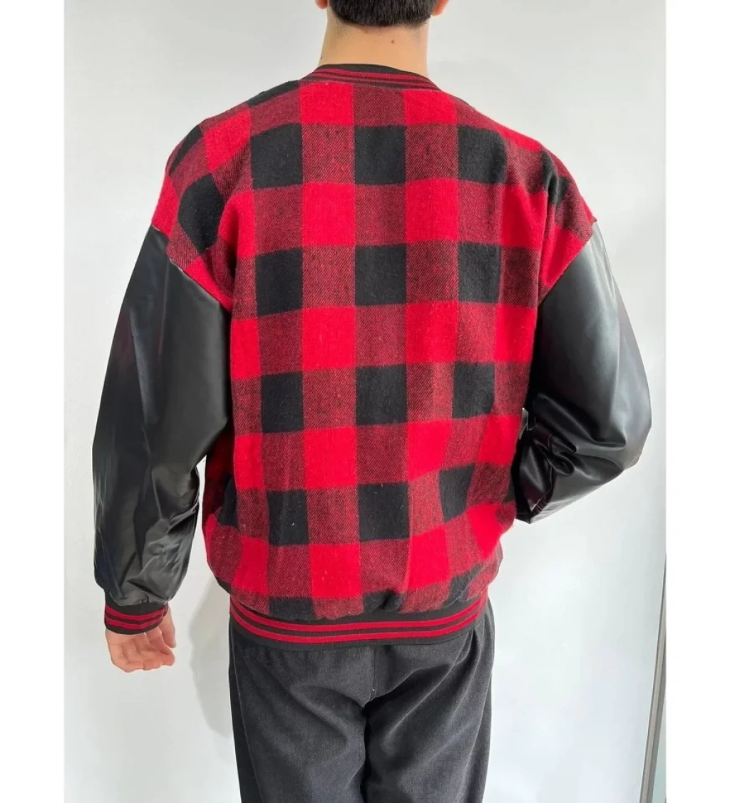 MARSiLYAN- Erkek Kolları Yıldız Sırt Baskılı Oversize Kolej Ceket - Kırmızı