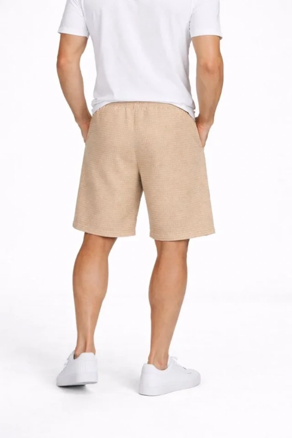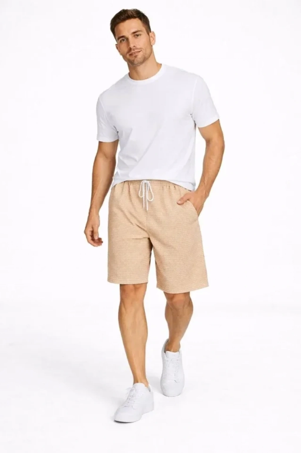 Erkek Pötikareli Şort – Beli Lastikli Bağcıklı, Cepli, Rahat Kesim Günlük Yazlık Şort - Bej