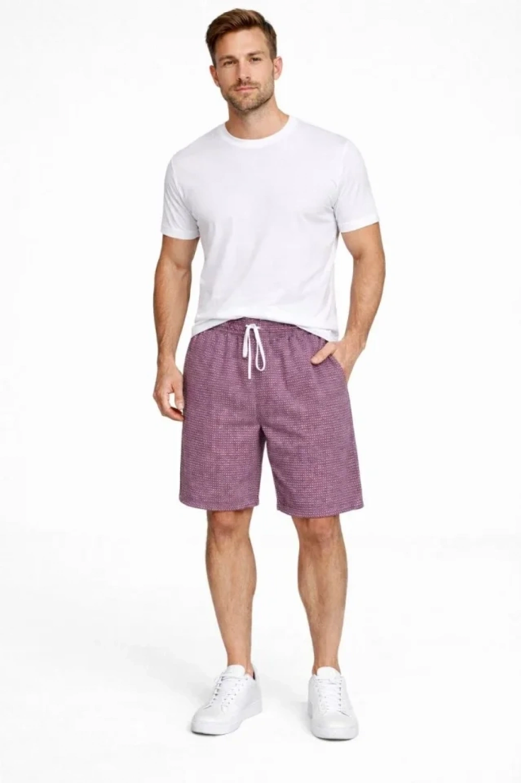 Erkek Pötikareli Şort – Beli Lastikli Bağcıklı, Cepli, Rahat Kesim Günlük Yazlık Şort - Gül Kurusu