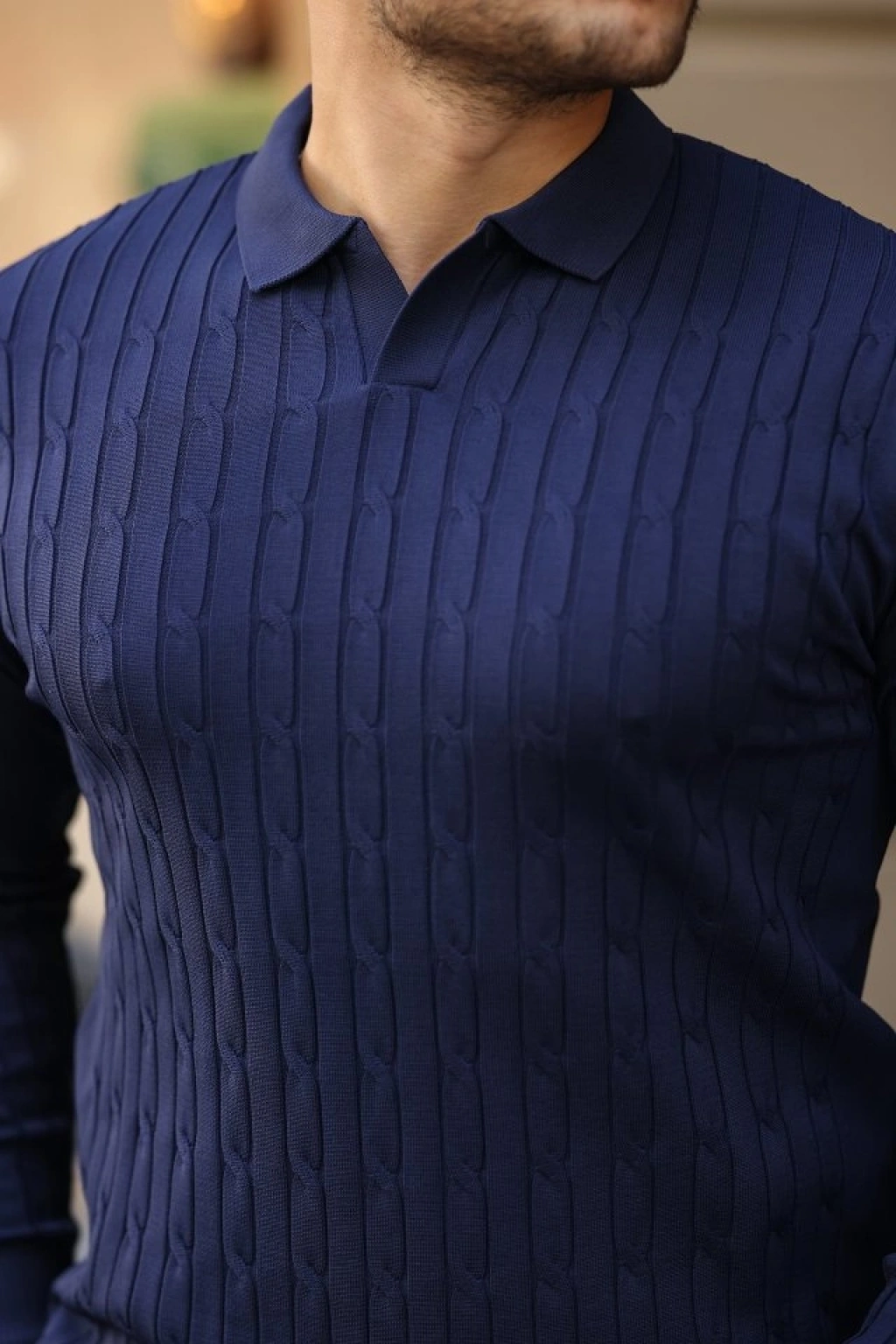 MARSiLYAN- Erkek Selanik örme Yakalı Uzun Kollu Triko