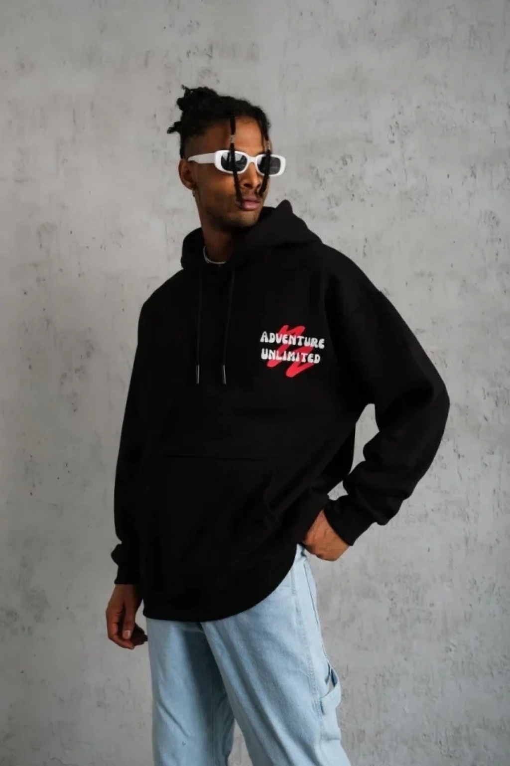 MARSiLYAN- Erkek DANKES Baskılı Kapüşonlu Sweat - Siyah