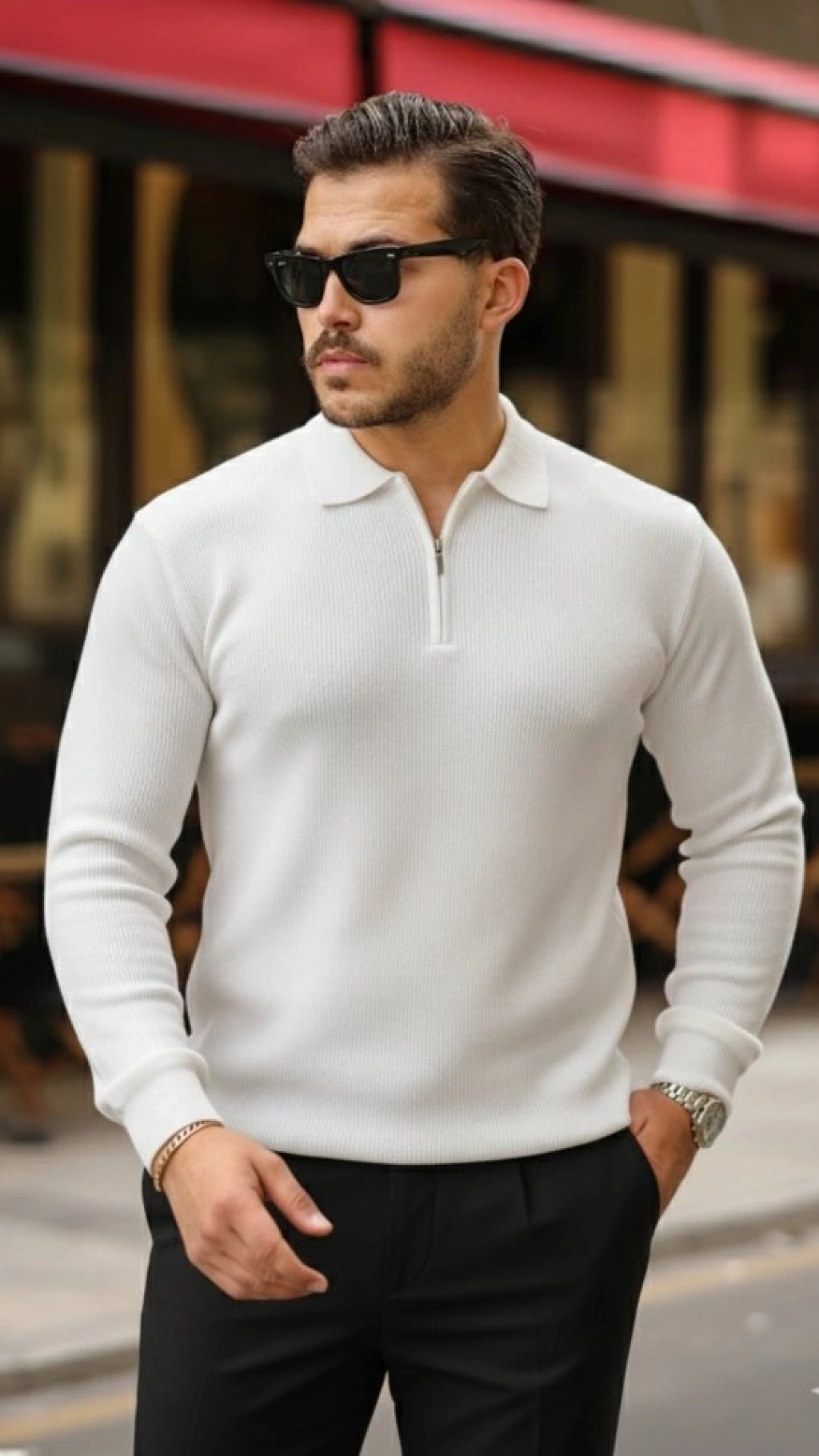 Erkek Selanik örme Yakalı Uzun Kollu Triko