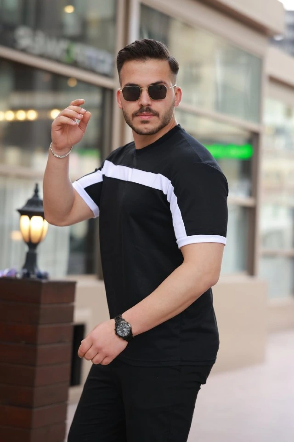 MARSiLYAN- Erkek Bisiklet Yaka Ön Baskılı Kısa Kollu Tişört Streetwear Günlük Basic Pamuklu T-shirt - Siyah