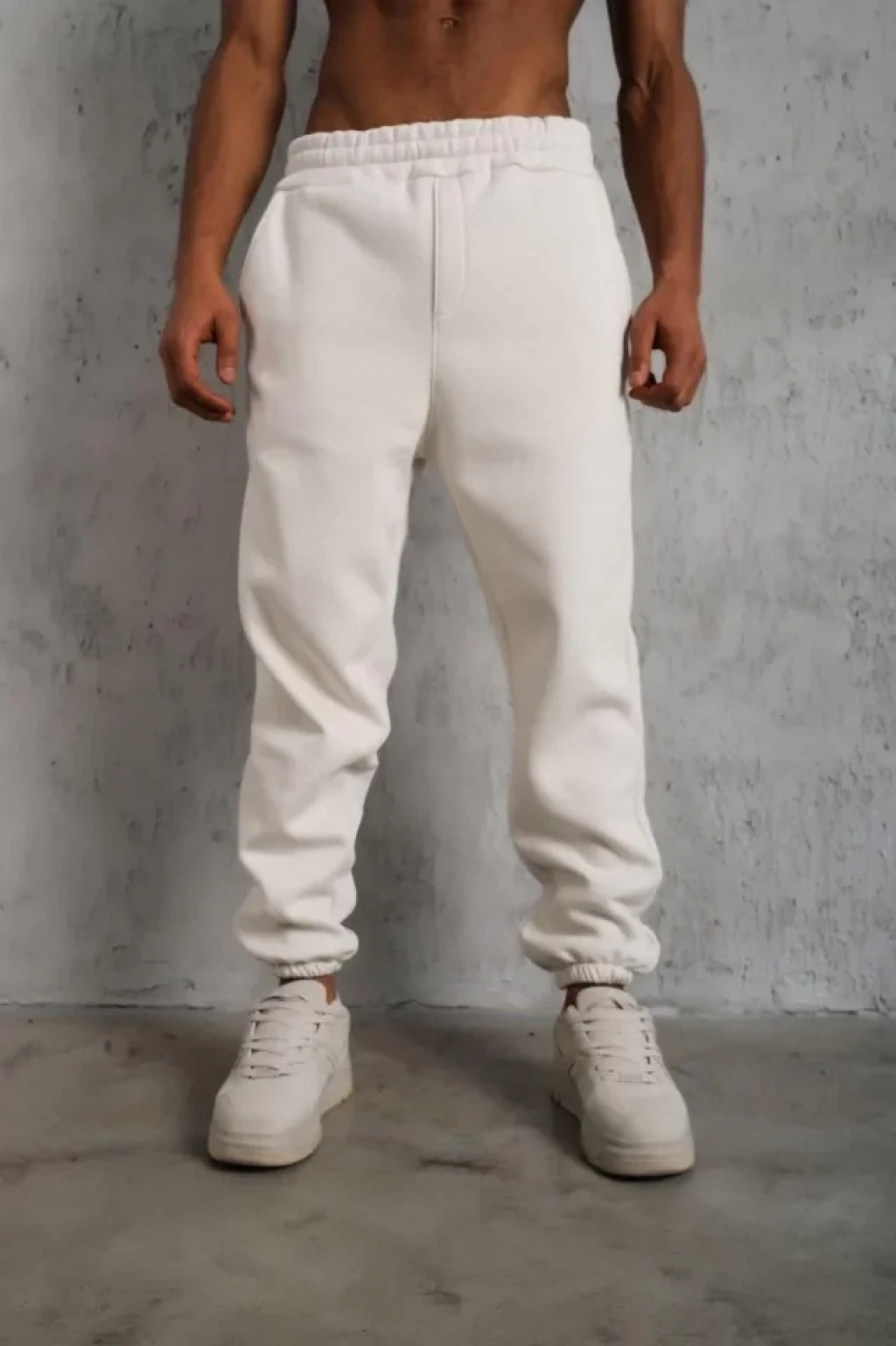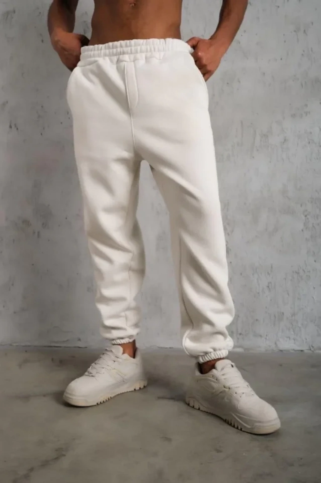 Erkek Üç İplik Alt Eşofman Lastikli - Beyaz