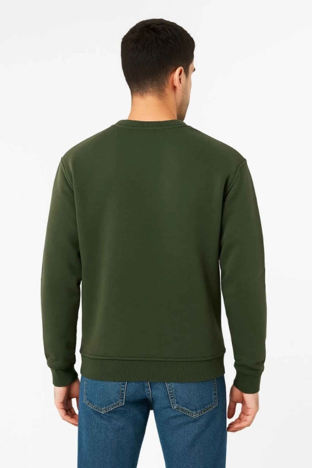 Erkek Üç İplik Düz Bisiklet Yaka SweatShirt - Haki