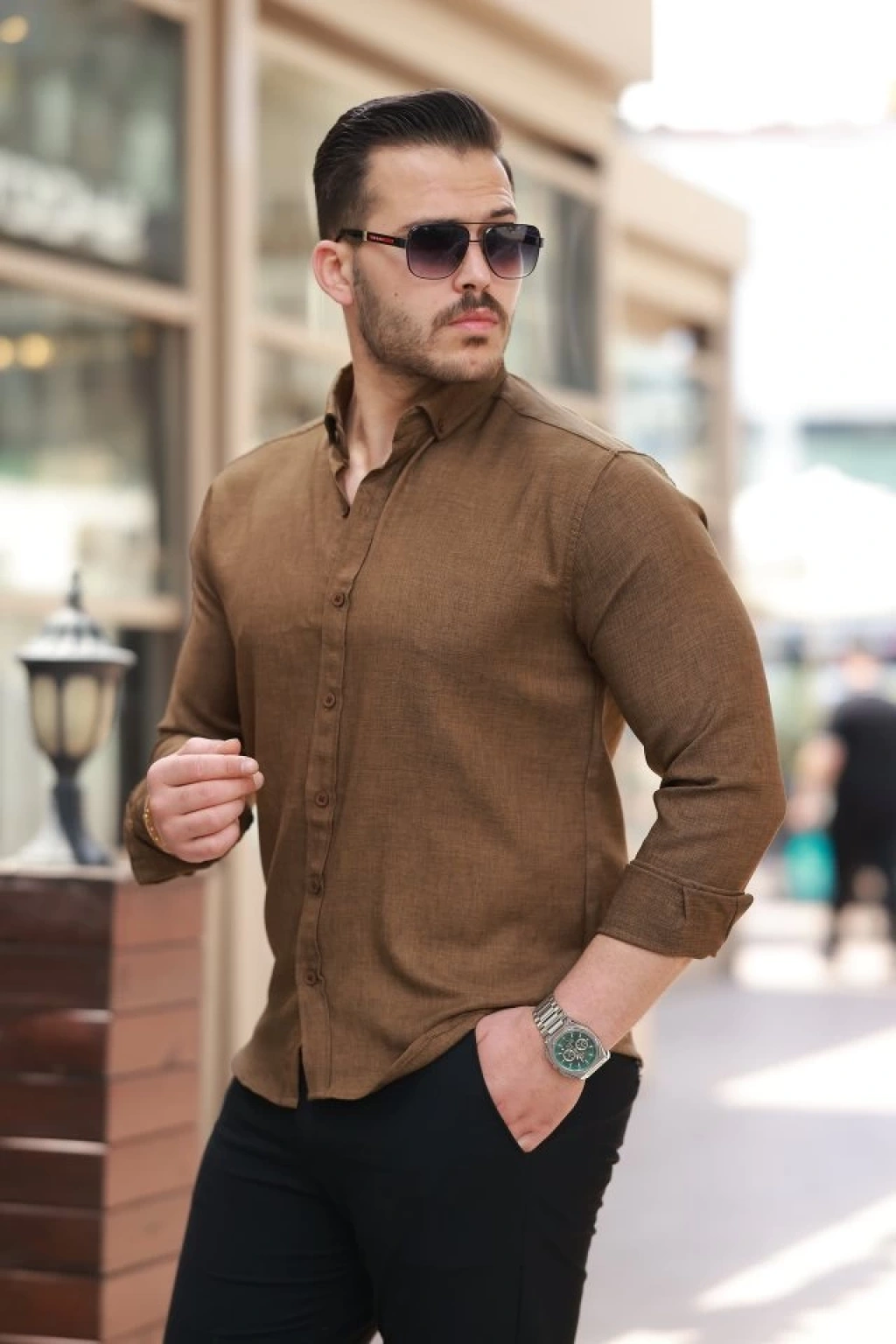 MARSiLYAN- Erkek Uzun Kollu Keten Gömlek