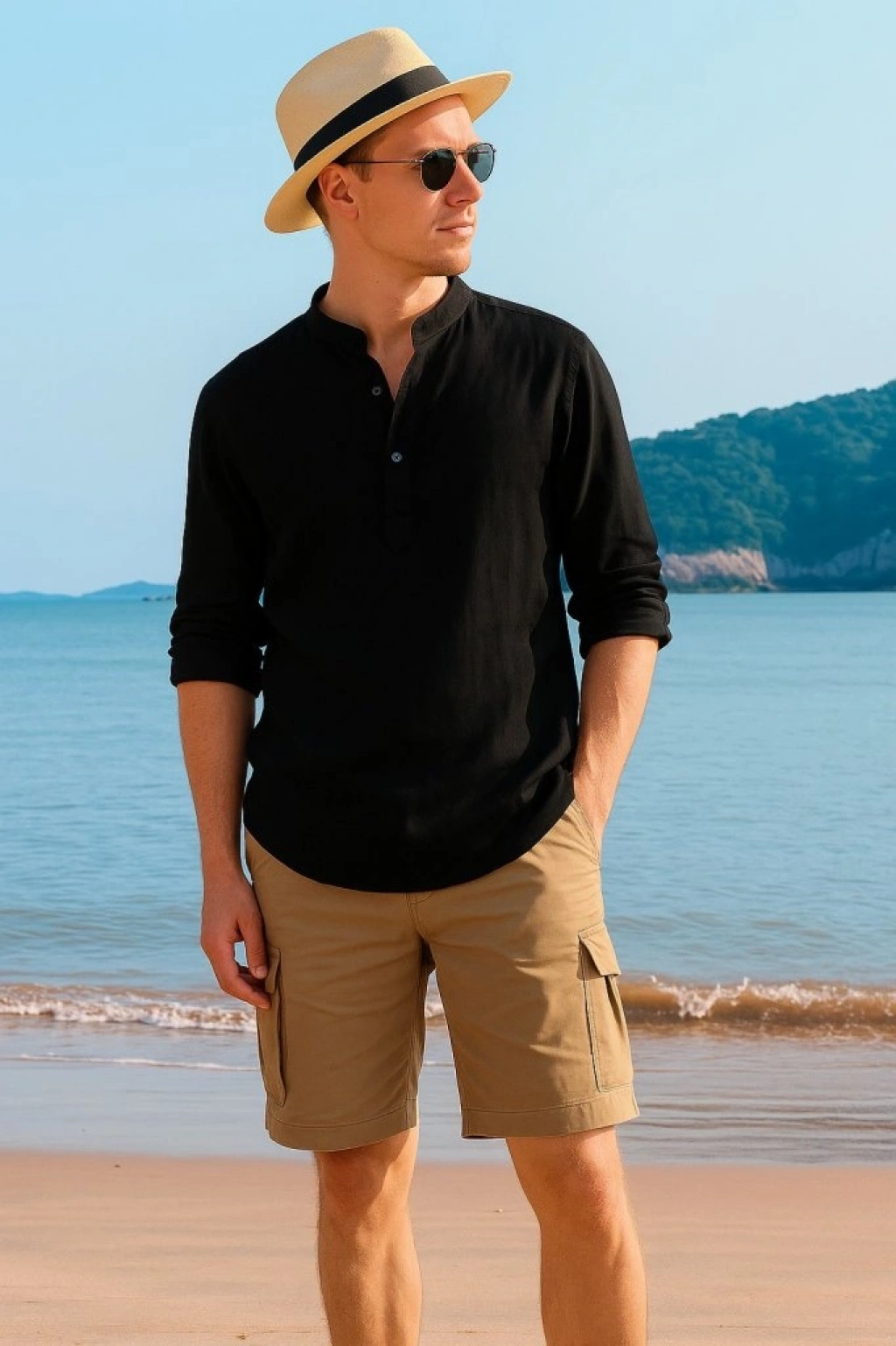 Erkek Uzun Kollu Hakim Yaka Düğmeli Erkek Müslim Gömlek