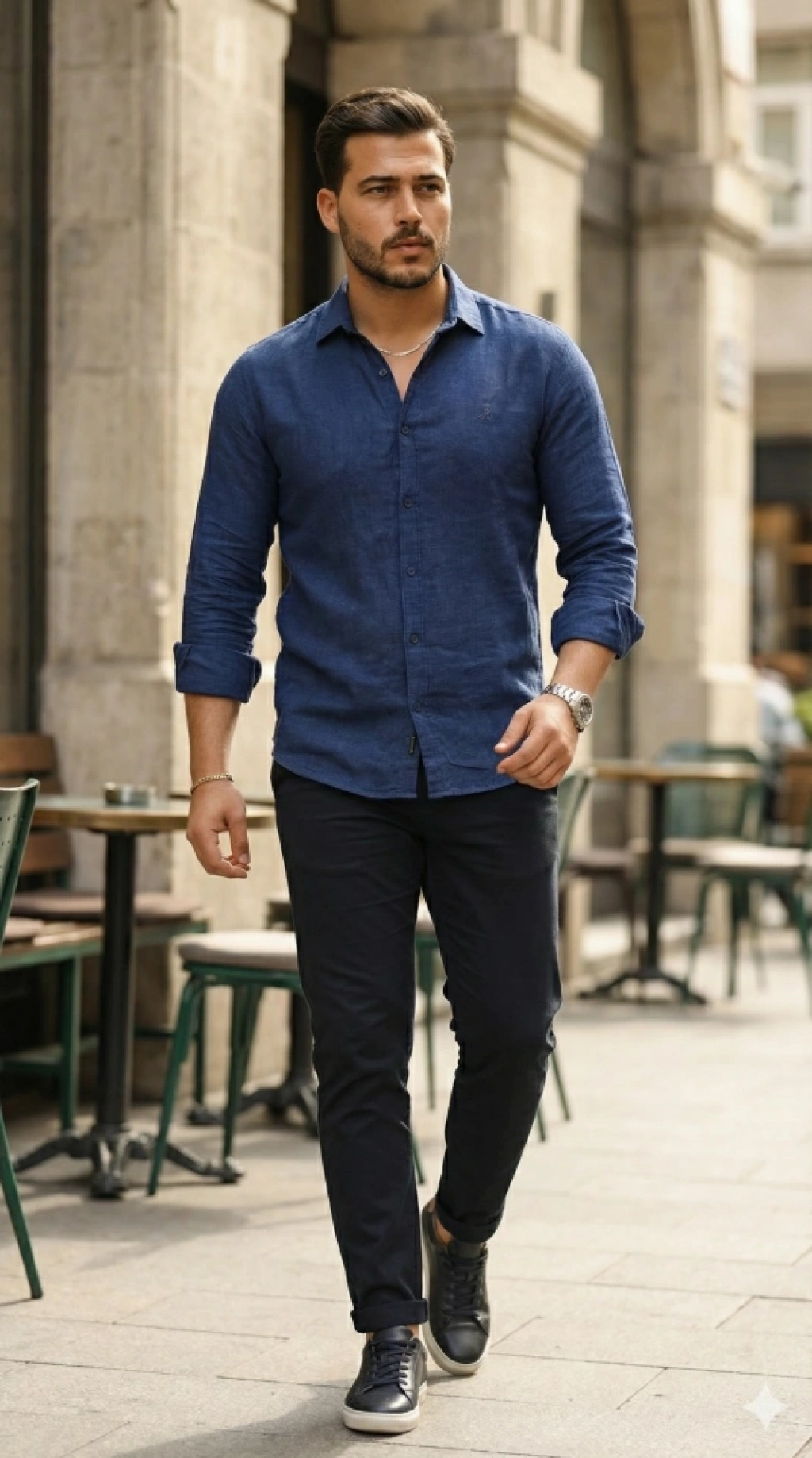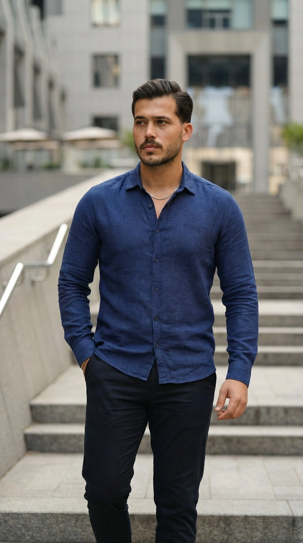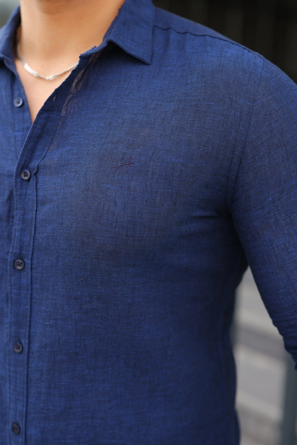 MARSiLYAN- Erkek Uzun Kollu Keten Gömlek
