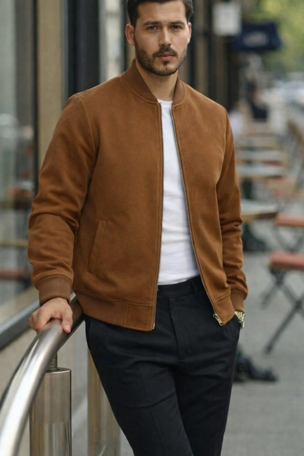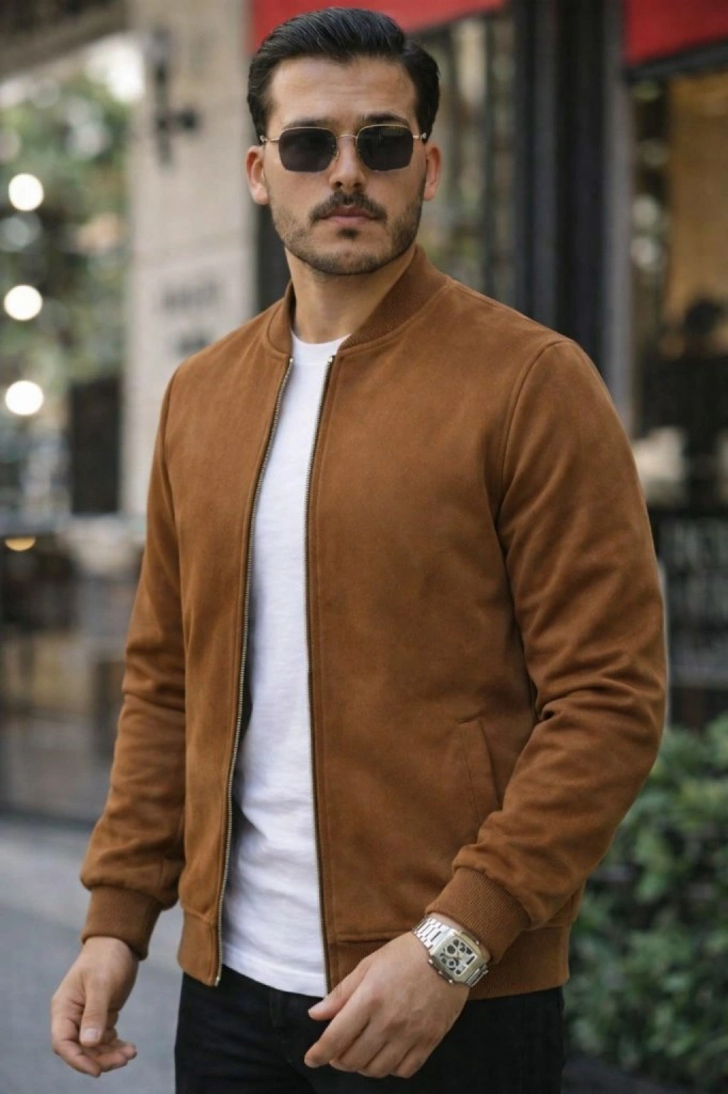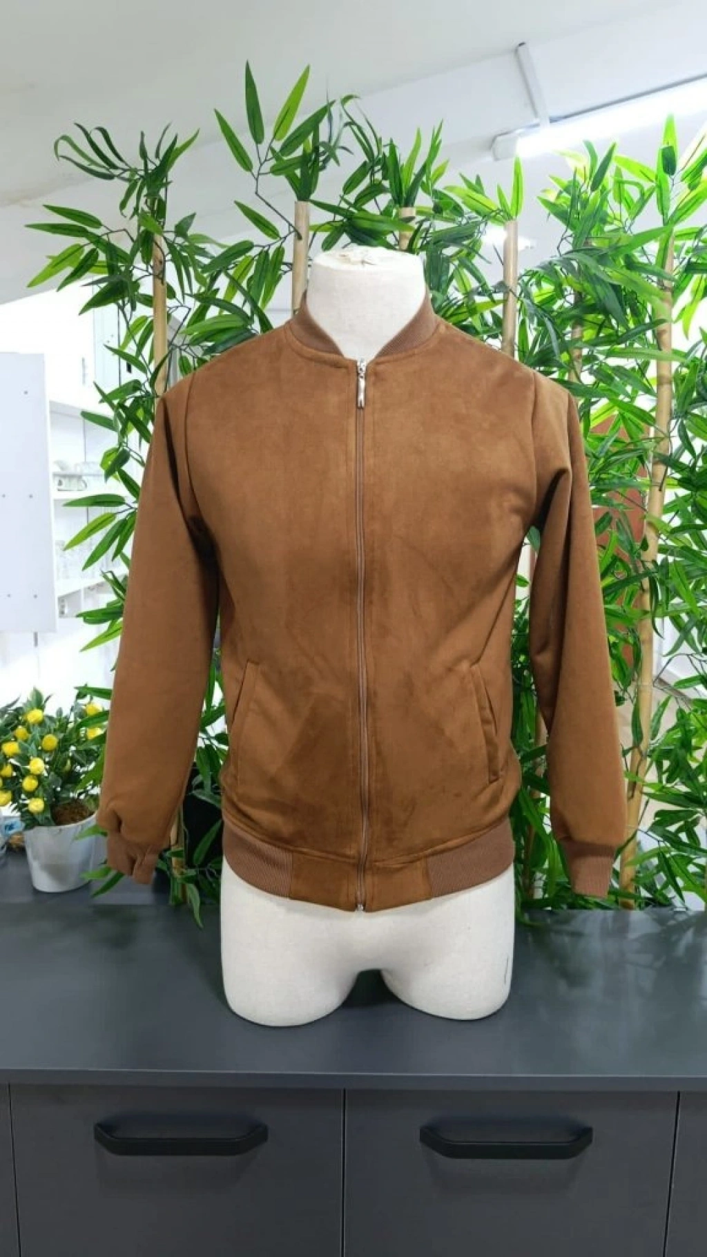 Erkek Uzun Kollu önden Fermuarlı Süet Ceket