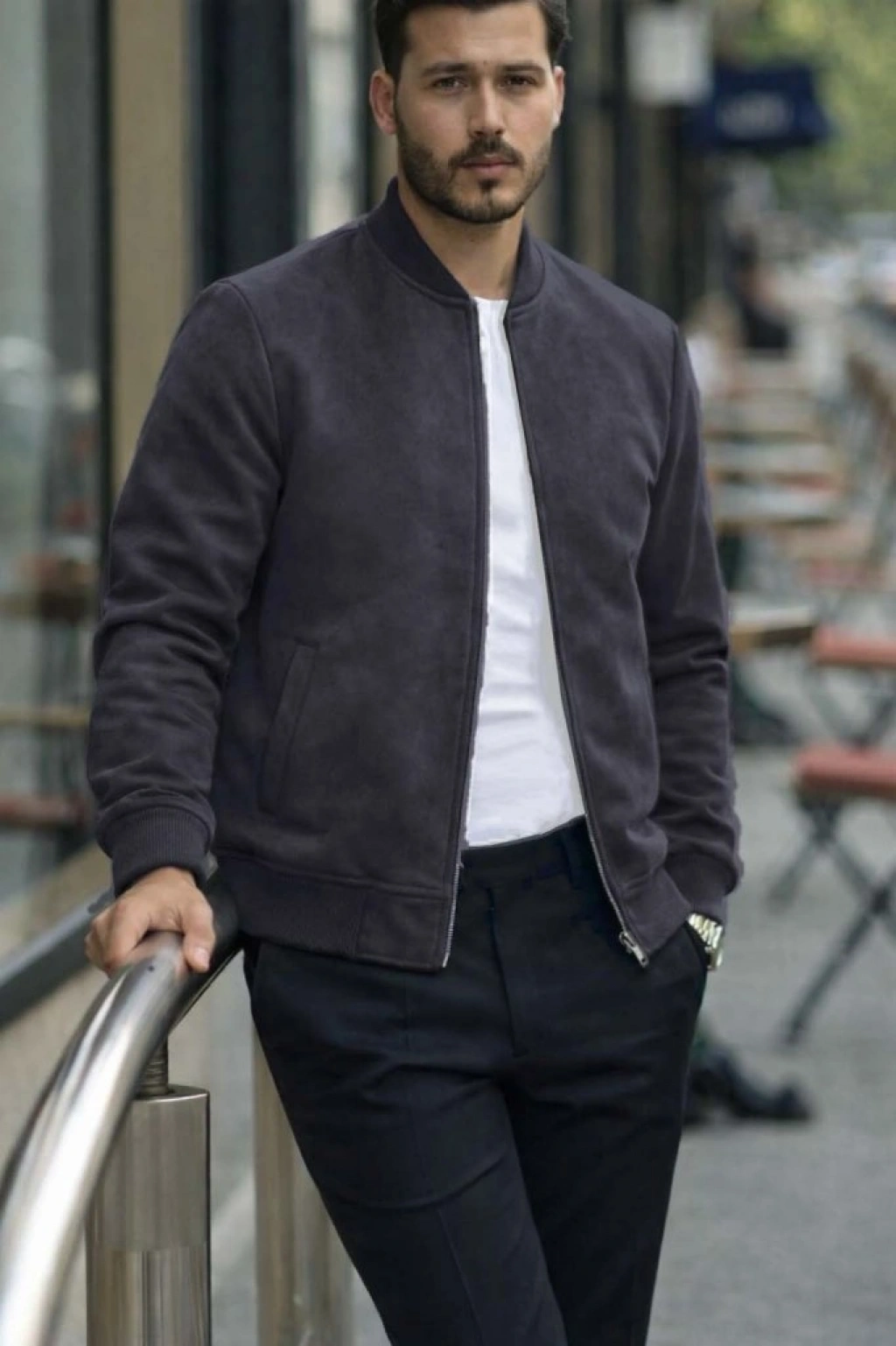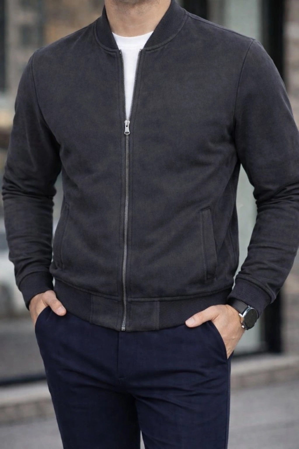 Erkek Uzun Kollu önden Fermuarlı Süet Ceket