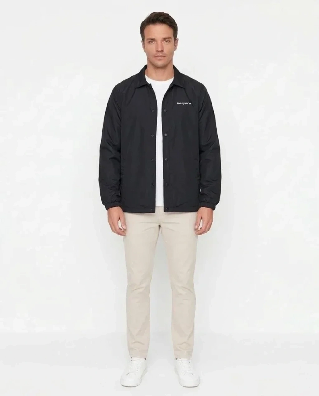 Erkek Yağmur İtici İç Astarlı Çıtçıtlı İç Cepli Dış Cepli Mevsimlik Ceket - Siyah