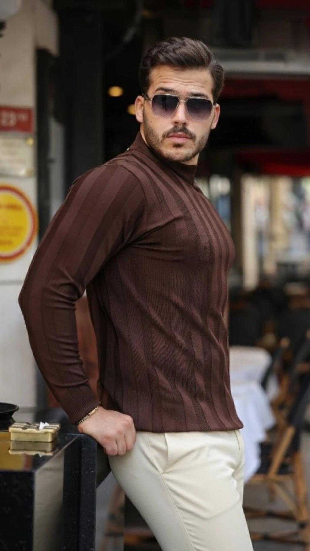 Erkek Yarım Balıkçı Yaka Kabartma Desenli Triko