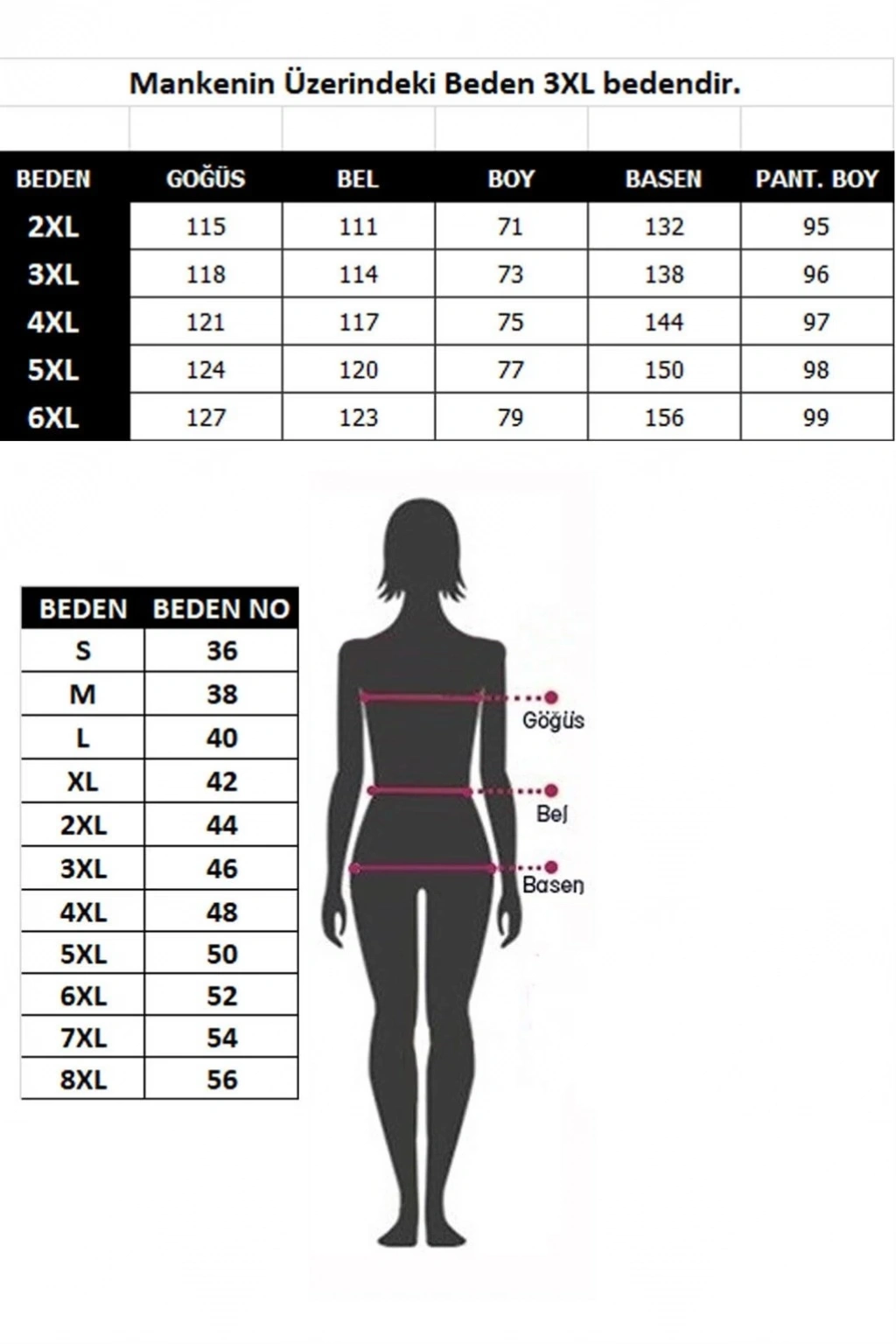 | BEDEN | GOĞÜS | BEL | BOY | BASEN | PANT. BOY |