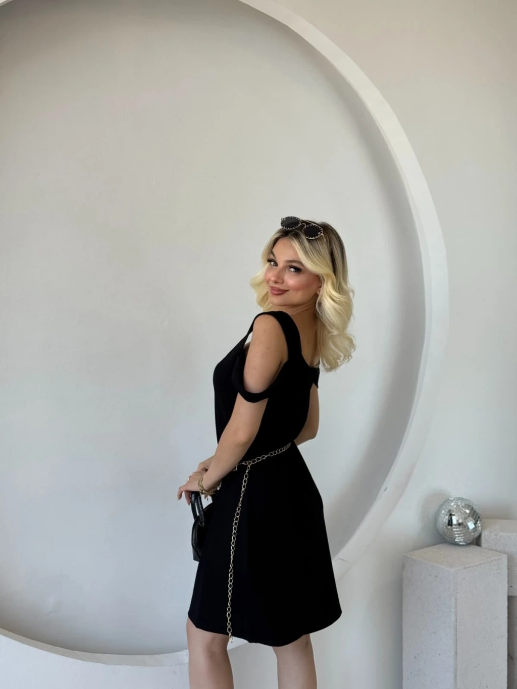 Kadın Askılı Soğuk Omuz Detaylı Modal Elbise