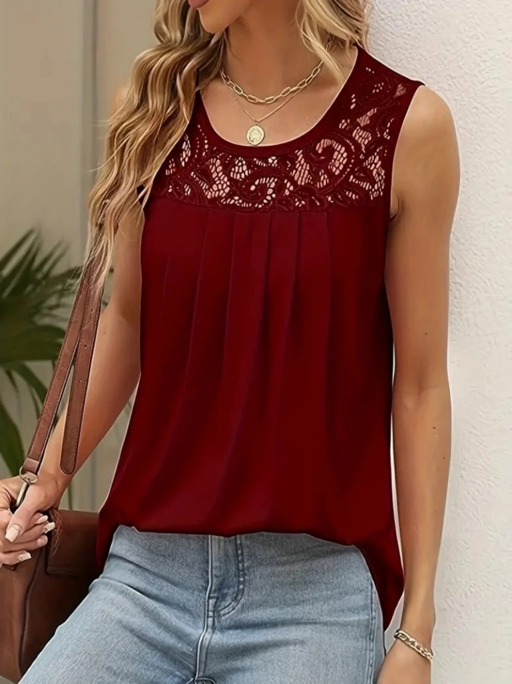 Kadın Askılı Yuvarlak Yaka Dantel Detaylı Viskon Bluz