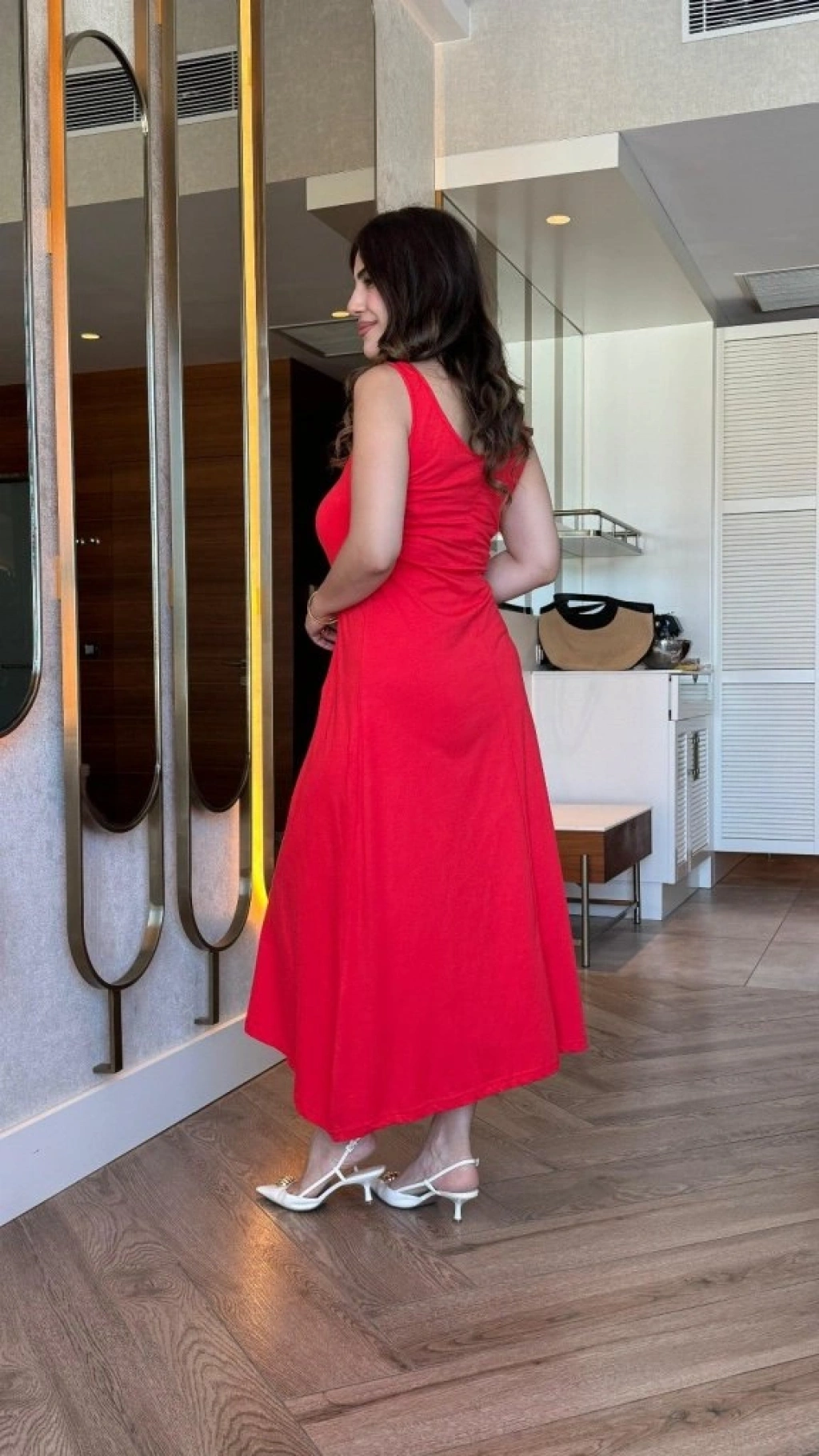 Modelin Ölçüleri: Boy:165, Kg:55, Göğüs:90, Bel:72, Kalça: 100