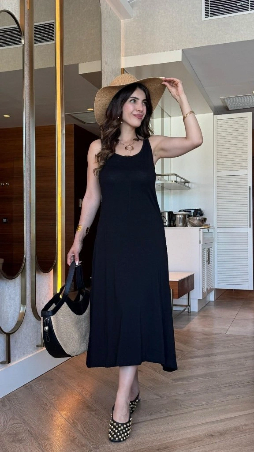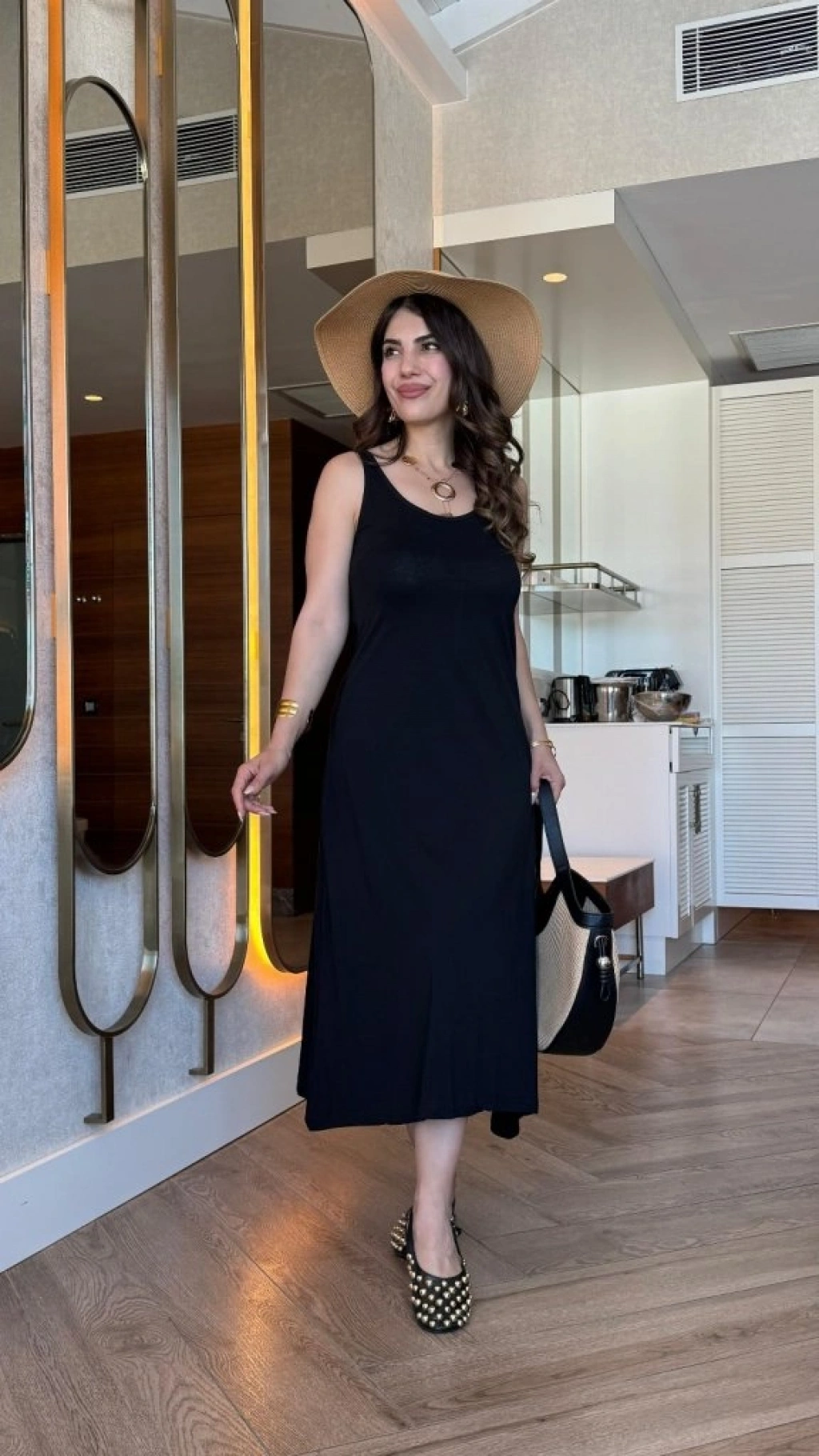 MARSiLYAN- Kadın Askılı Yuvarlak Yakalı Viskon Elbise