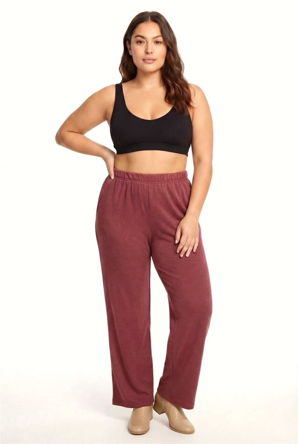 Şık bordo rengi ve dokulu kumaş detayı sayesinde klasik pijama altlarından ayrılarak hem rahat hem modern bir görünüm sunar.