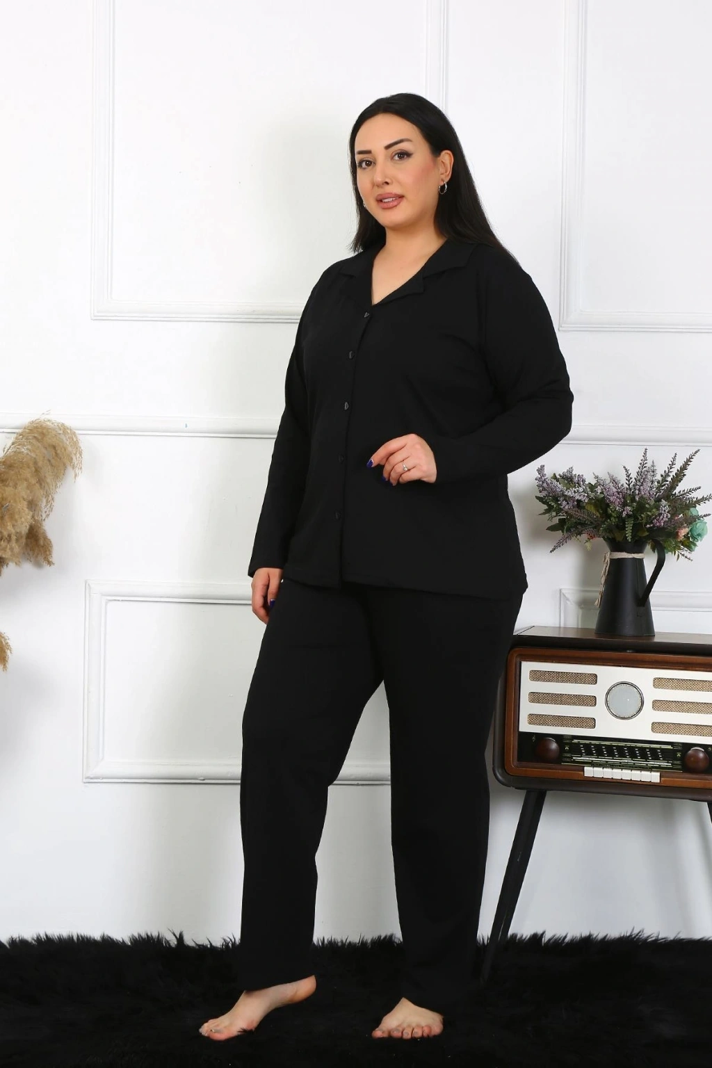 Kadın Pamuklu Cepli Uzun Kol Büyük Beden Pijama Takımı
