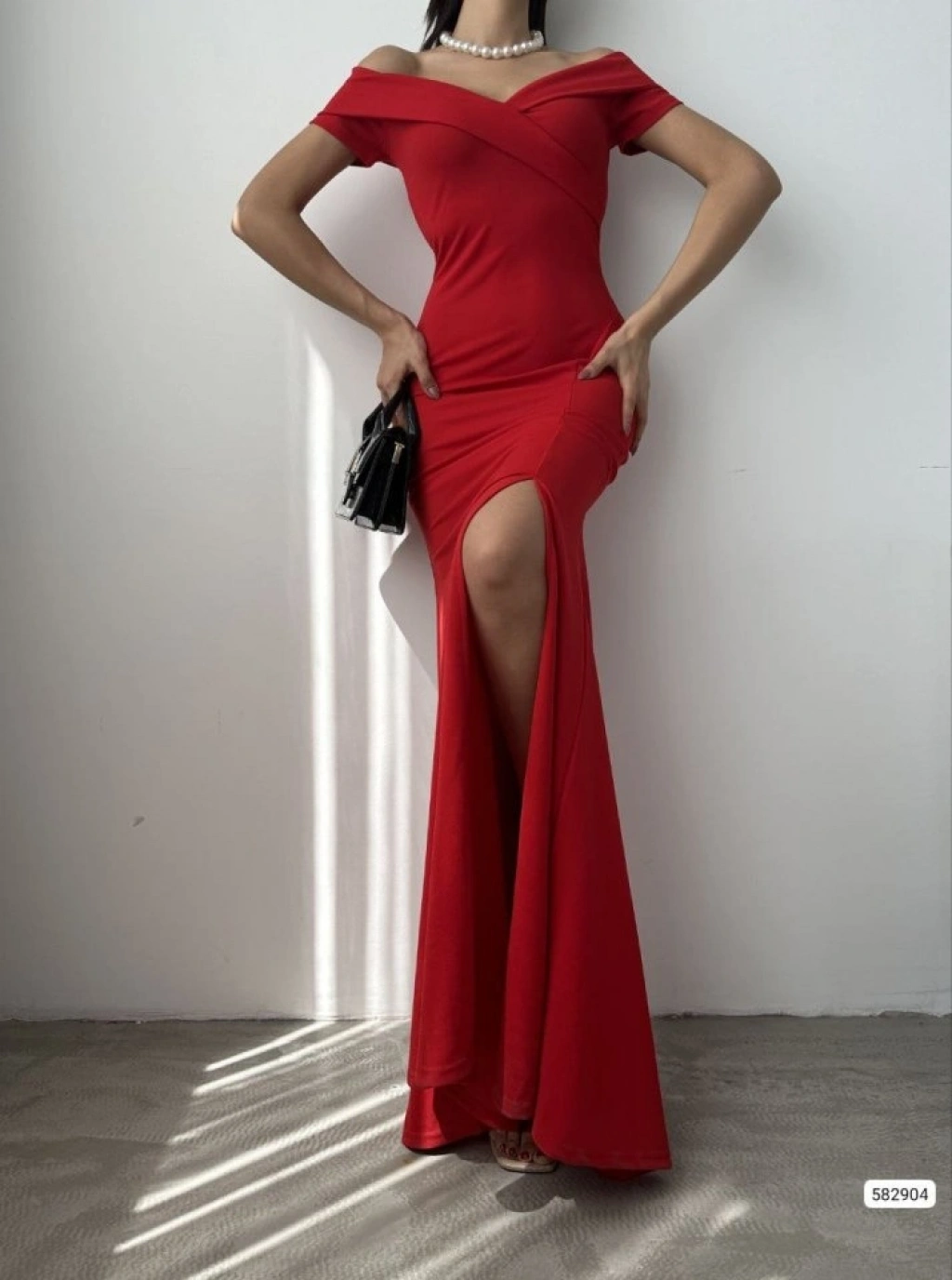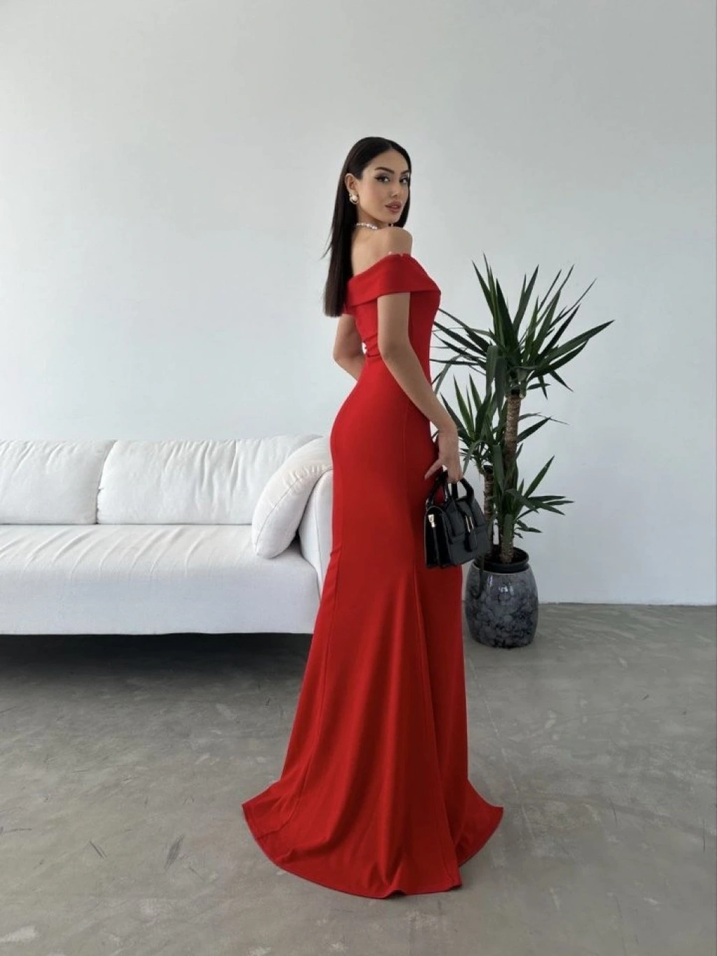 Kadın Dalgıç Kumaş Kayık Yaka Ve Dekolte Detaylı Elbise
