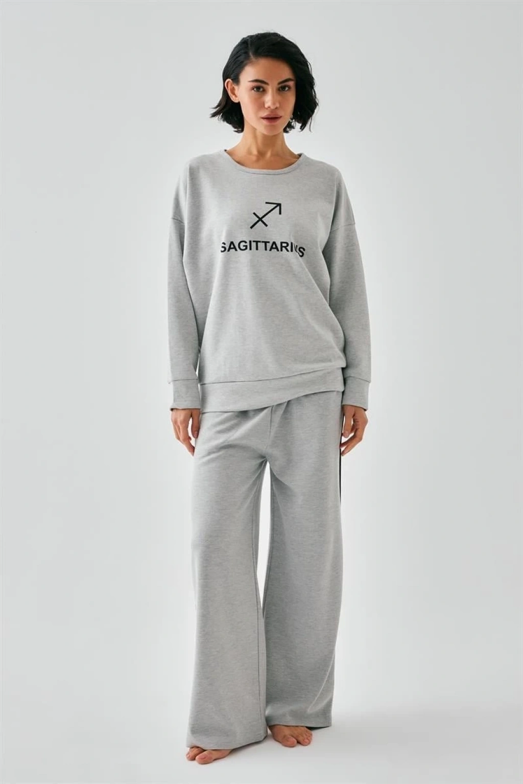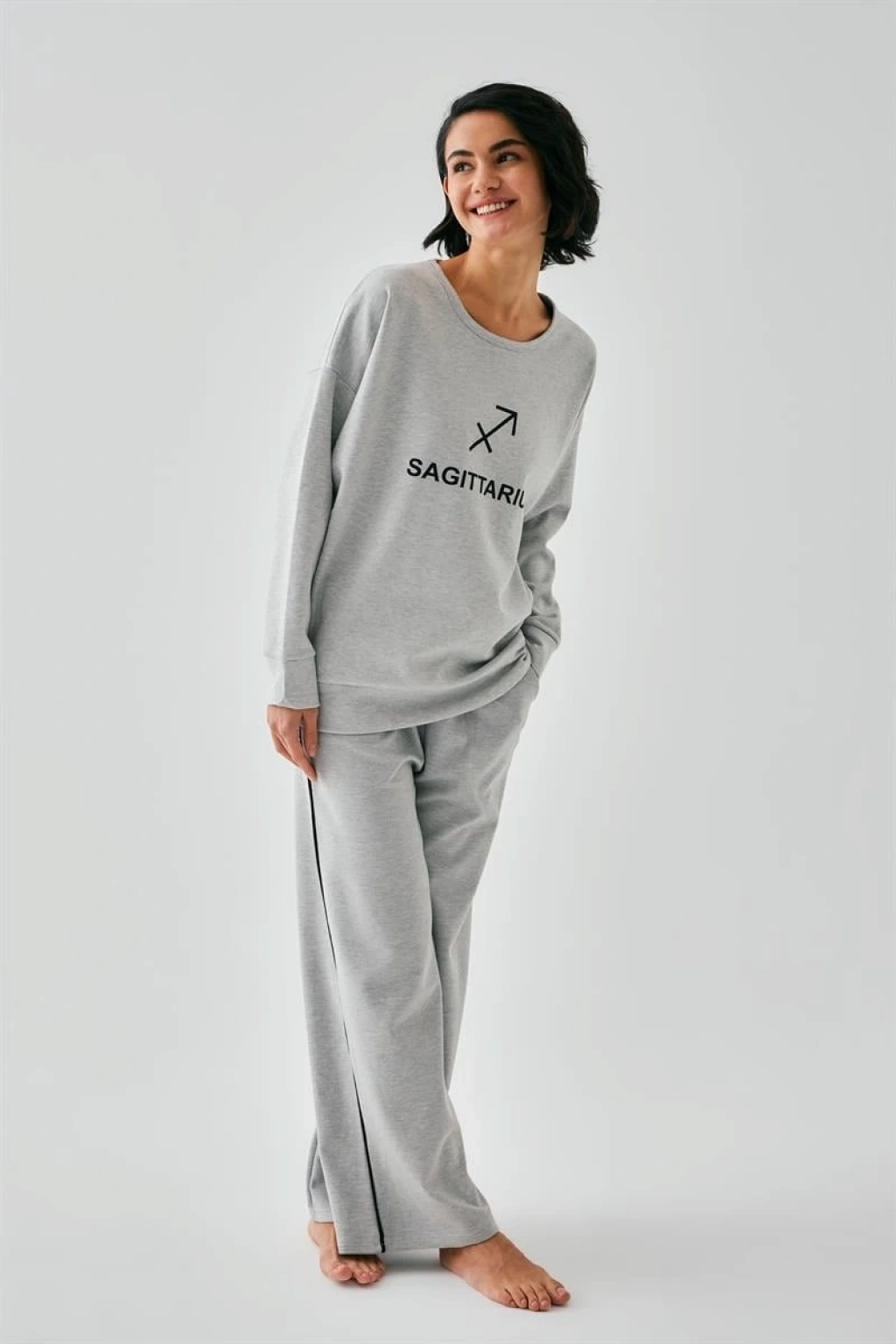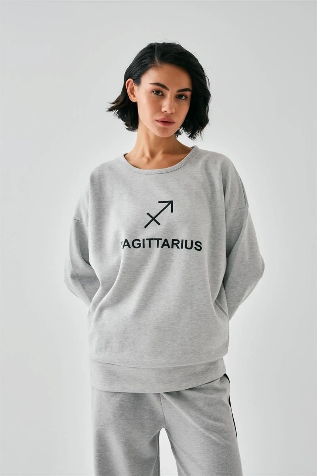 Çamaşır Kenti markasının yepyeni koleksiyonundan gri renkli ve yumuşacık dokusuyla dikkat çeken Yay Burcu Oversize 2 İplik Eşofman Ev Giyim Takımı, hem şıklığı hem de rahatlığı bir arada sunuyor.