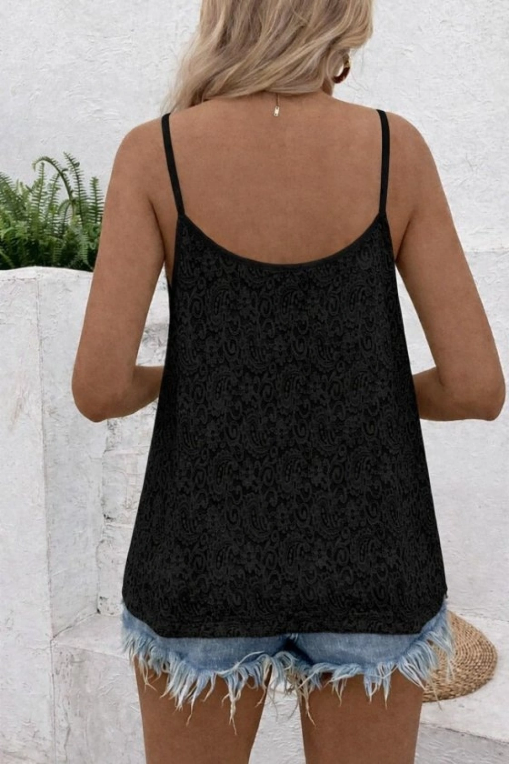 Kadın Ip Askılı V Dantel Yakalı Dantel Bluz